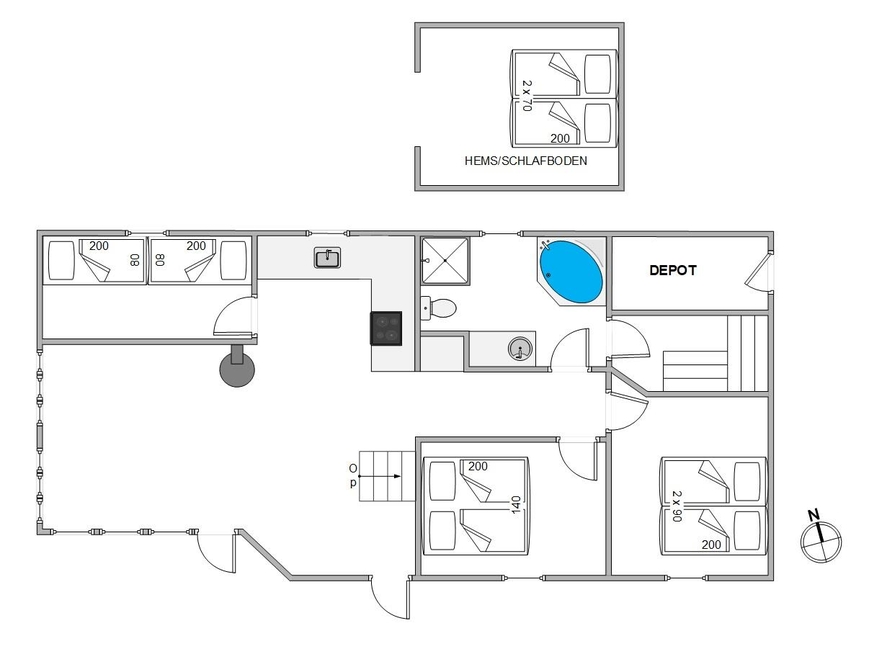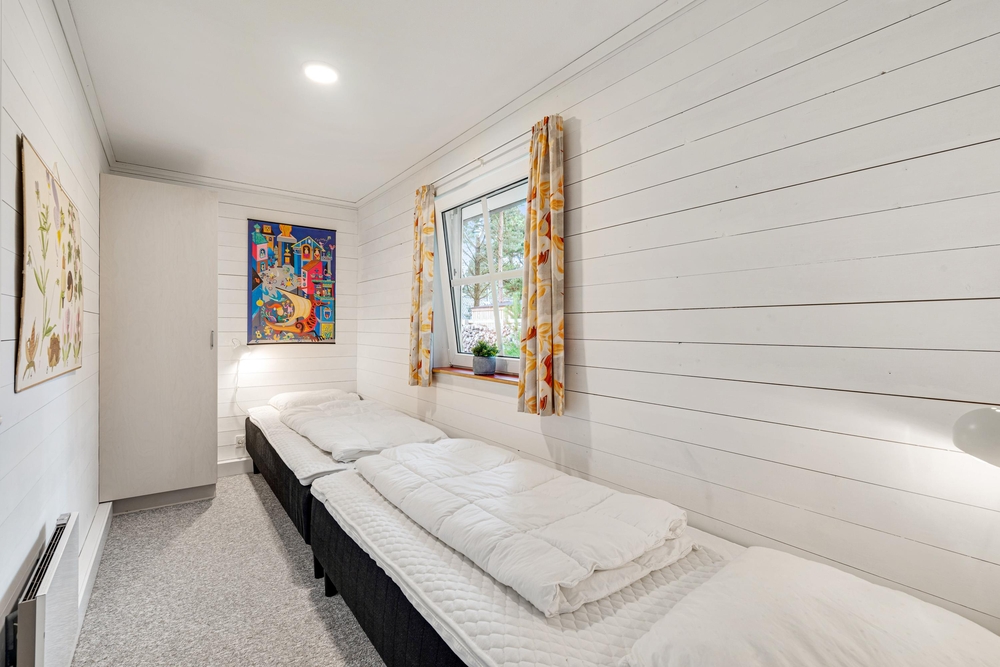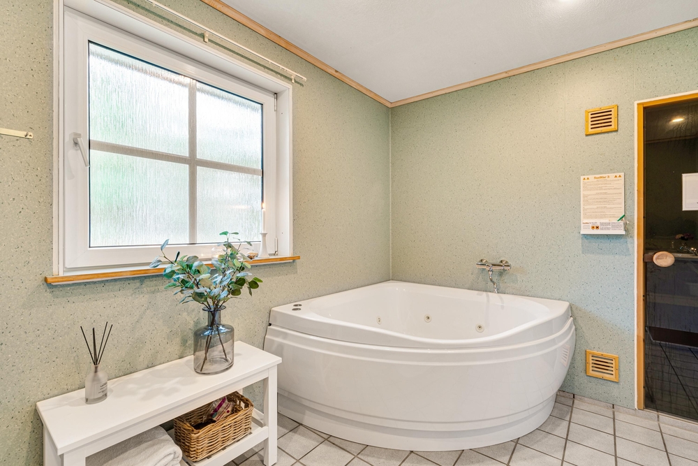 Das Ferienhaus verfügt über 3 Schlafzimmer, welche mit 2 Doppelbetten und 2 Einzelbetten ausgestattet sind. 2 zusätzliche Schlafplätze befinden sich im Dachgeschoss und bieten weiteren Raum für Übernachtungsgäste. Mit einer Fußbodenheizung und einem Whirlpool ausgestattet, bietet das Badezimmer ideale Bedingungen, um sich vom Alltagsstress zu erholen. Eine zusätzliche Sauna lädt euch dazu ein, Körper und Geist zu verwöhnen und neue Energie zu tanken.