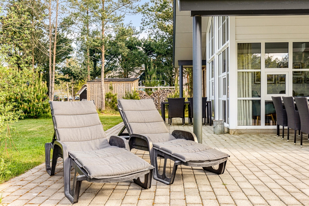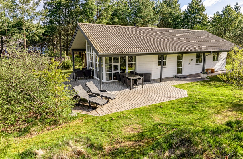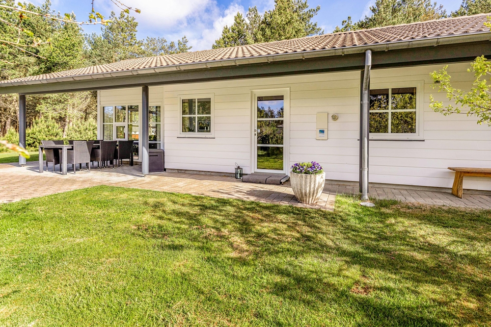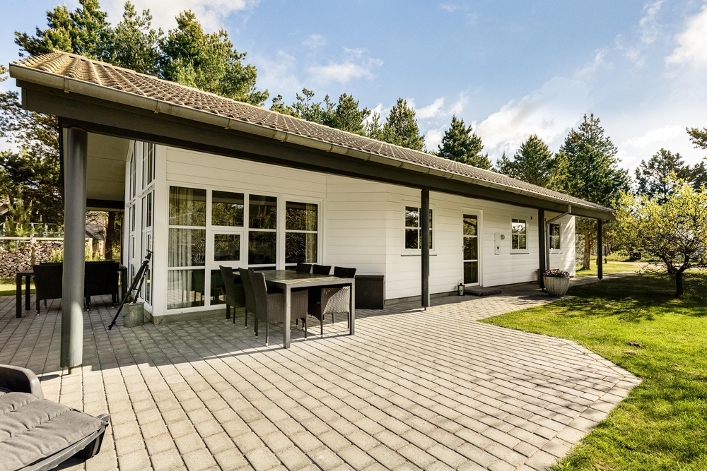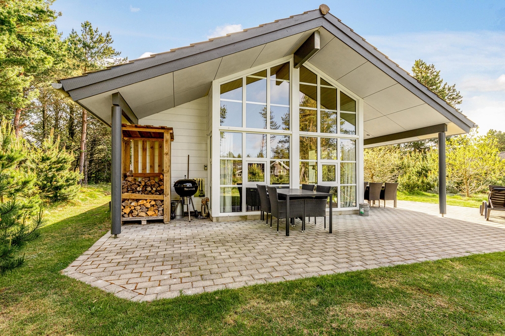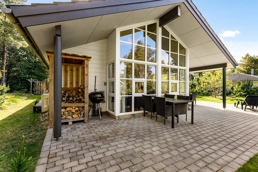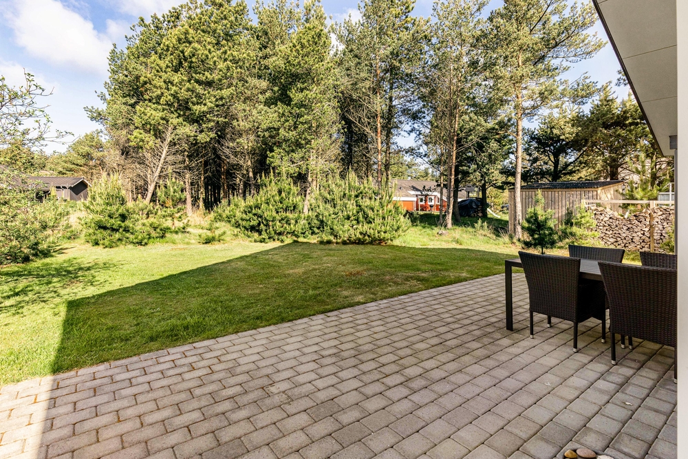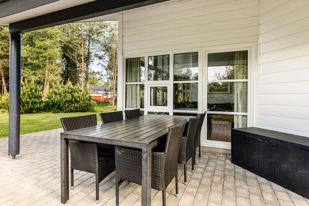 Eingebettet in ein weitläufiges Naturgrundstück bietet der Außenbereich im Guldvangen 28 zahlreiche Gelegenheiten zur Entspannung und Unterhaltung.