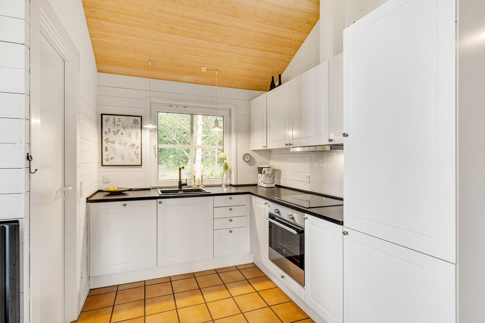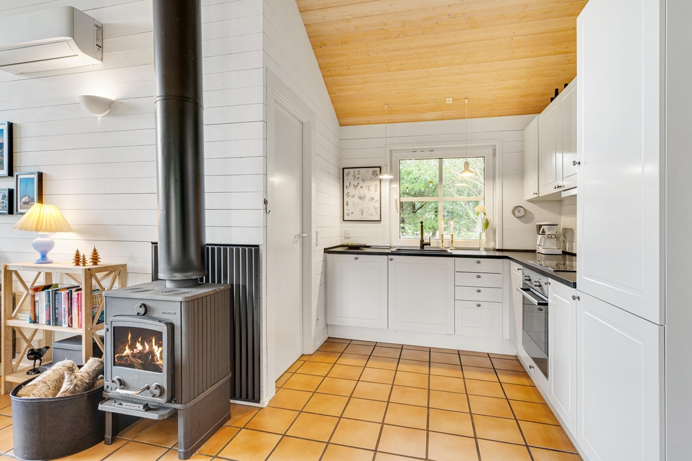 Der Mittelpunkt eures Ferienhauses ist der gemütliche Wohnbereich. Hier sorgt ein Kaminofen für wohlige Wärme während kühler Abende, schafft eine einladende Atmosphäre zum Entspannen und Verweilen und lädt euch dazu ein, gemeinsame Stunden mit der Familie oder Freunden zu verbringen. Die Küche bietet alles, was ihr für die Zubereitung köstlicher Mahlzeiten benötigt. Eine moderne Spülmaschine erleichtert den Abwasch, sodass euch mehr Zeit bleibt, um das Essen und die Gesellschaft zu genießen. Der nahtlose Übergang zwischen Küche und Essbereich schafft eine offene und einladende Atmosphäre, die jedem Aufenthalt eine besondere Note verleiht.