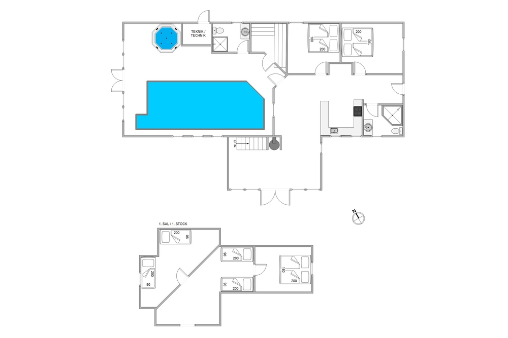 Mit 180m² ist für bis zu 10 Personen genug Platz ? es gibt 4 Schlafzimmer, 3 davon mit Doppelbetten, 1 weiteres mit 4 Einzelbetten, plus 2 extra Schlafmöglichkeiten im Dachgeschoss. Jeder kann also seinen eigenen Rückzugsort finden. Und weil Komfort hier großgeschrieben wird, warten 2 Badezimmer auf euch ? eines davon mit einer Sauna und einem Whirlpool, die nach einem langen Tag nur darauf warten, euch zu verwöhnen.