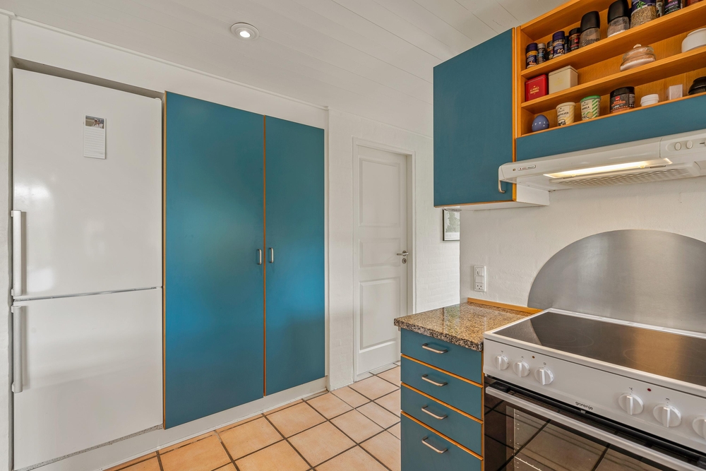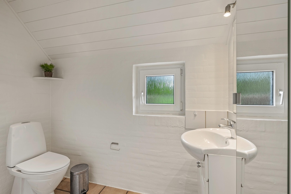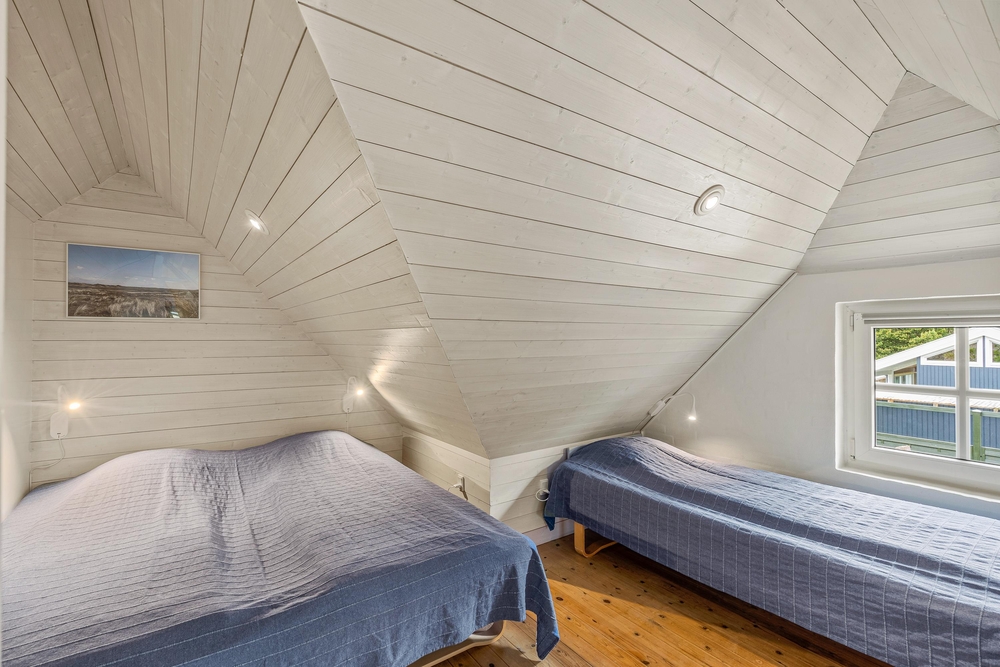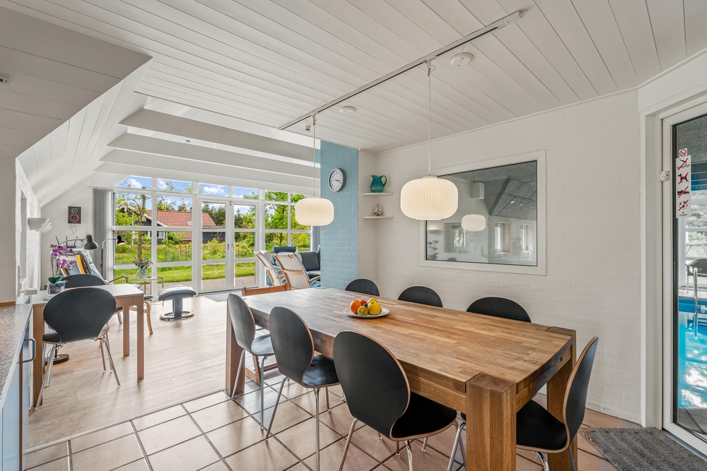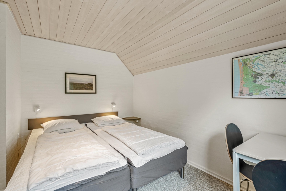 Guldvang 70 ist ein schönes grosses Haus, sodass mehrerer Familien hier Urlaub machen können. Das Ferienhaus verfügt über 4 räumliche Schlafzimmer und 2 Badezimmer mit Bodenheizung. 2 der Schlafzimmer sind im Obergeschoss zu finden. Die Küche steht in Offener Verbindung zum Essbreich und Wohnzimmer, sodass ihr einen guten Überblick über das Haus haben könnt, während ihr in der Küche euer Essen zubereitet.