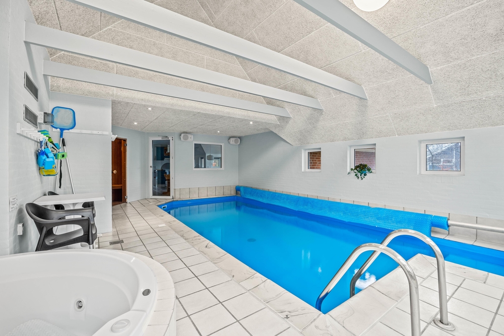 Guldvangen 71 verfügt über einen Grossen Schwimspa mit Gegenstromanlage und einer Wassertiefe von 1,40m, in direkter Verbindung zum Schwimspa gibt es auch ein kleines Babybassin 1x1m. Hier können die Kinder bestimmt viele Stunden verbringen und eine menge Energie verbrauchen. Möchte man es sich so richtig gut gehen lassen, und die Muskeln im Körper auflockern, dann springt in den Whirlpool, den ihr beim Schwimmspa findet, und ihr damit einen guten Überblick zu den Kindern habt. Wollt ihr so richtig vom Alltagsstress runterkommen, habt ihr die Möglichkeit euch in der Sauna zurückzuziehen, während ihr die Wärme geniesst.