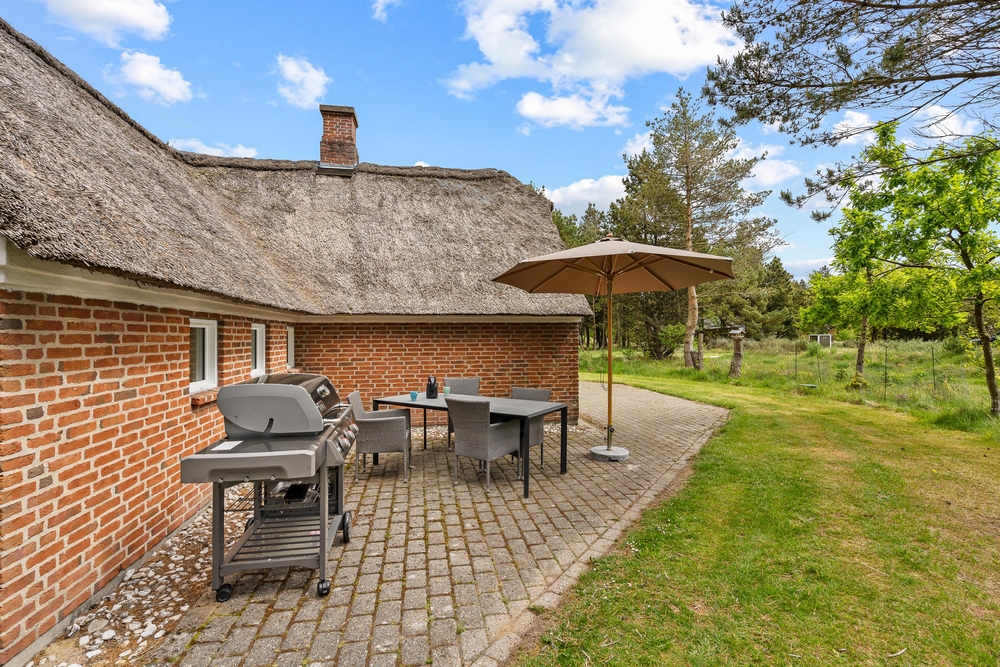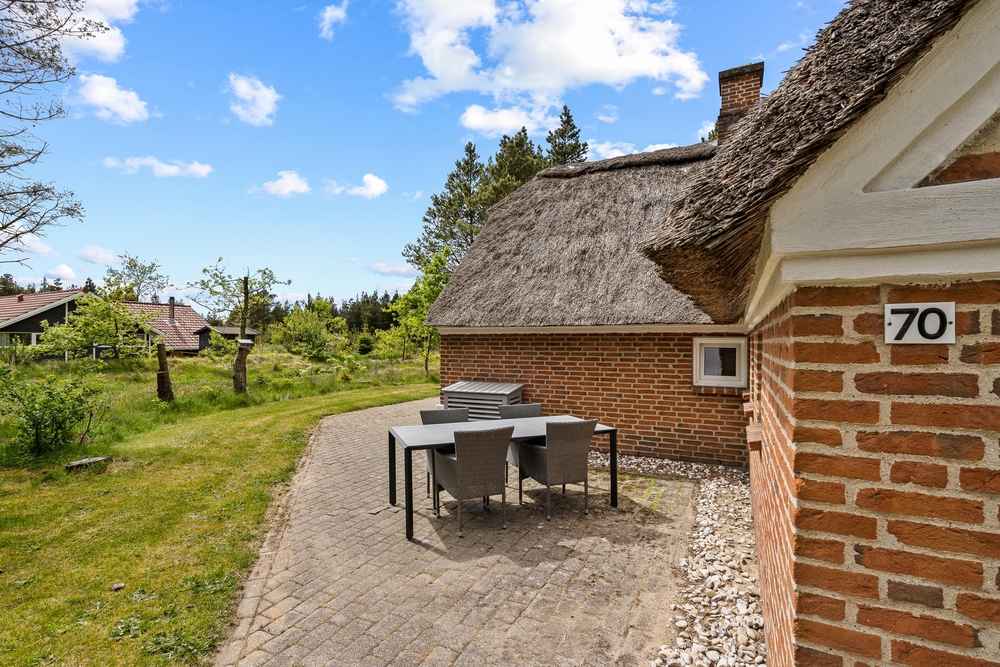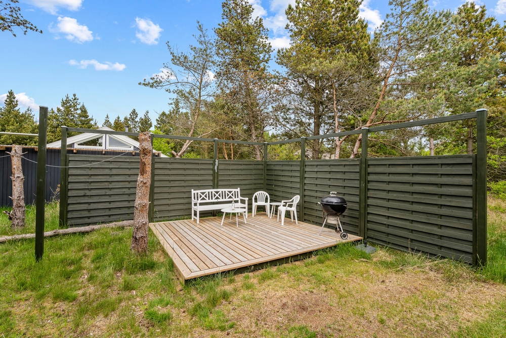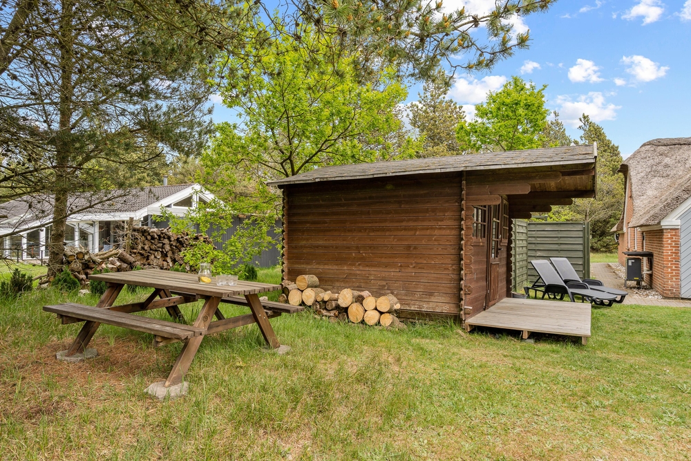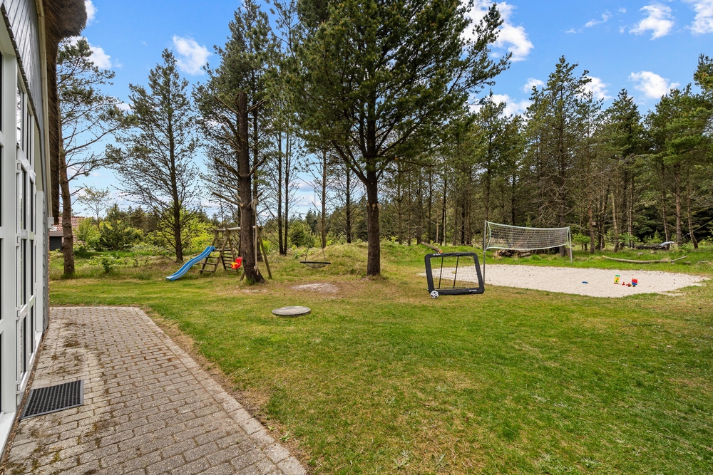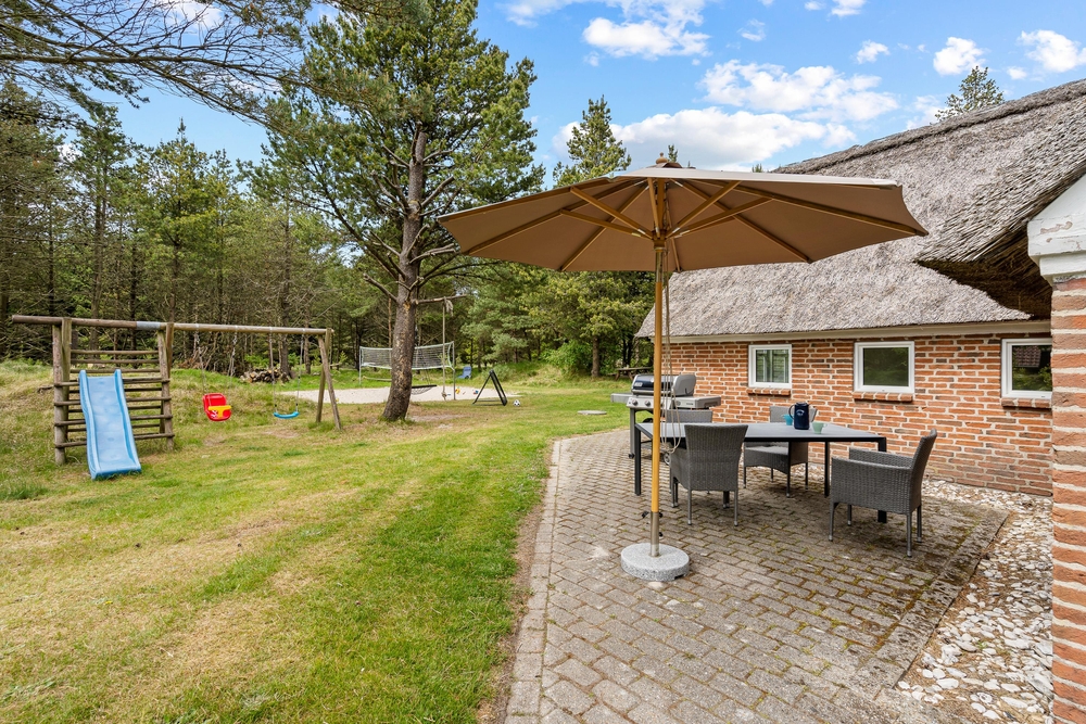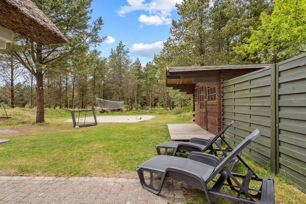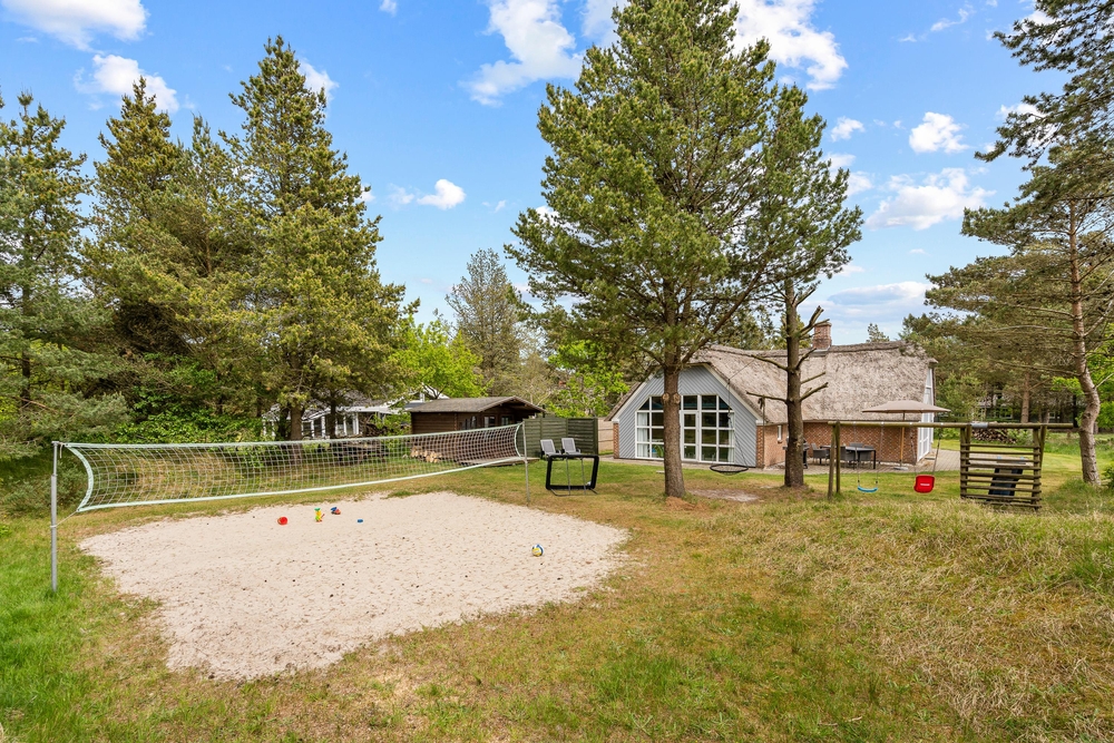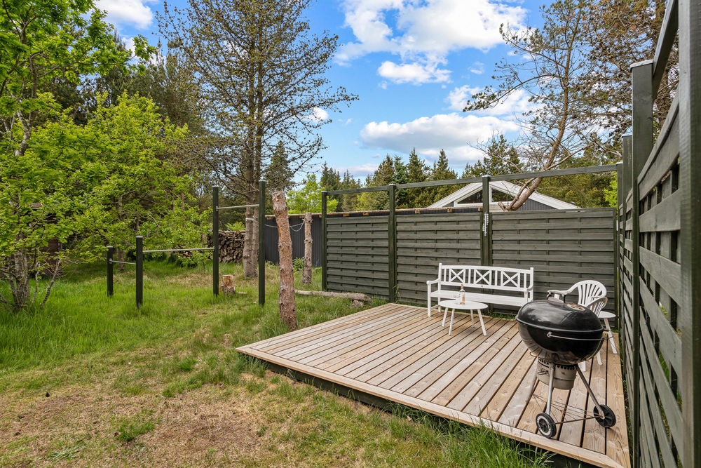Guldvangen 70 verfügt über einen tollen Aussenanlage, wo ihr sicherlich viele Stunden verbringen könnt. Auf dem 2300m² Grundstück ist ein Volleyball Platzt angelegt, versucht euere Kräfte bei der Pull-up Barriere und für die kleineren Kindern gibt es Spielgeräte mit Schaukel, Sandkiste und Rutsche. Das Ferienhaus ist mit einer Fliesenbelgten Terrasse umgekräntzt, und gibt euch so mehrerer Möglichkeiten die Sonne zu geniessen. Ihr habt die Möglichkeit ein tolles Barbecue auf den Gasgrill oder Kohlengrill oder beides zusammen zu machen.