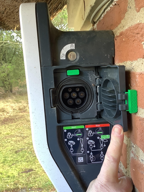 Euer Elektroauto könnt ihr am Haus mit einem 11kW Ladeanschluss (T2 Steckdose) aufladen.