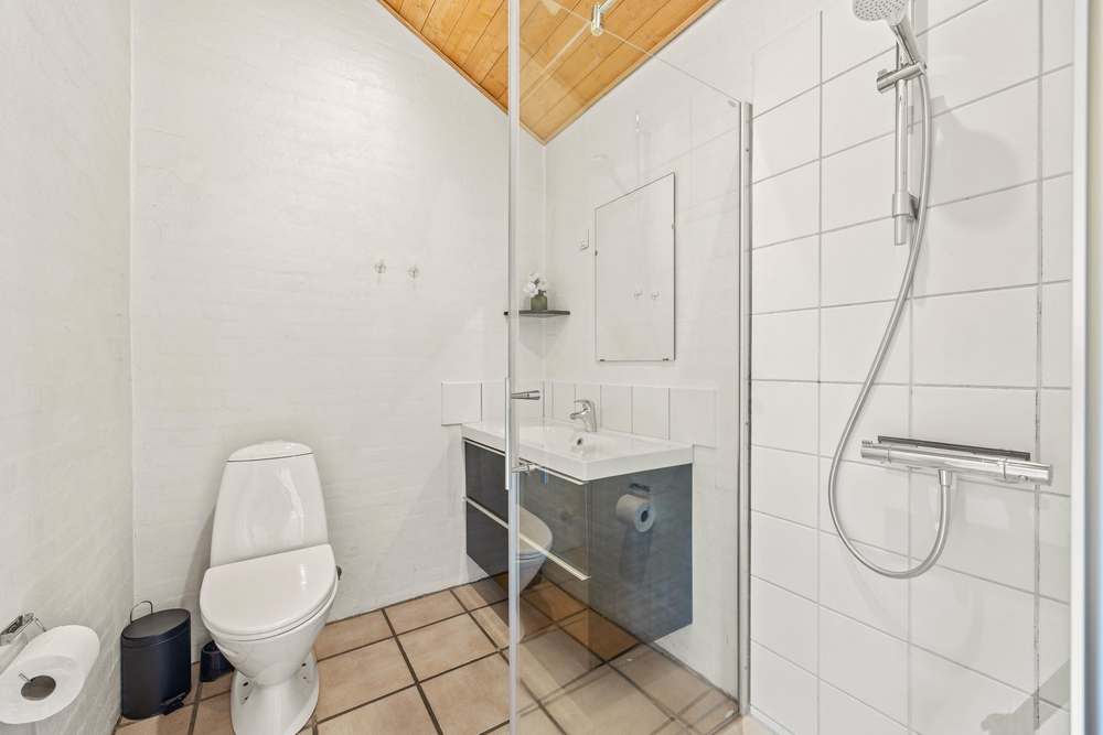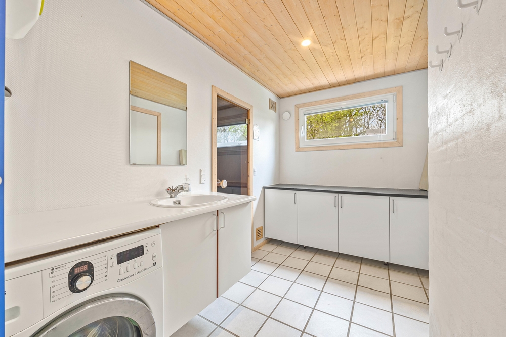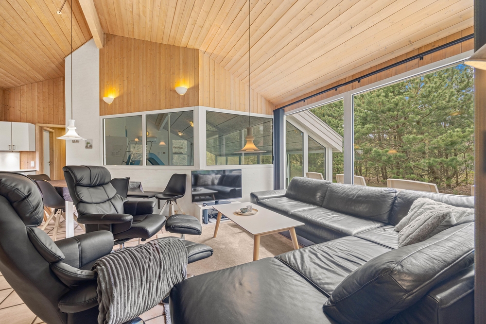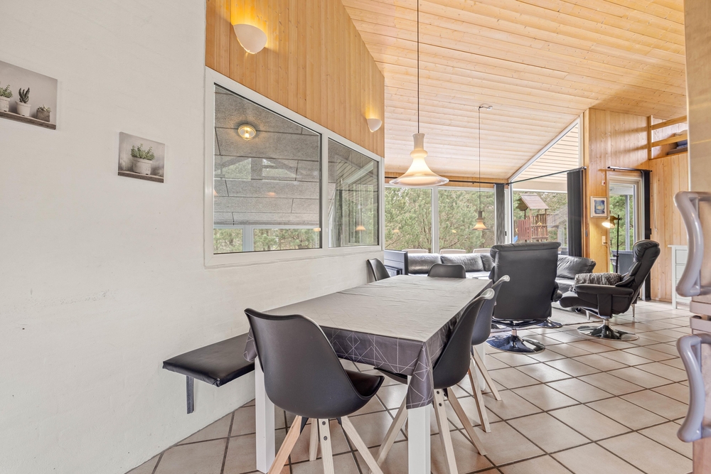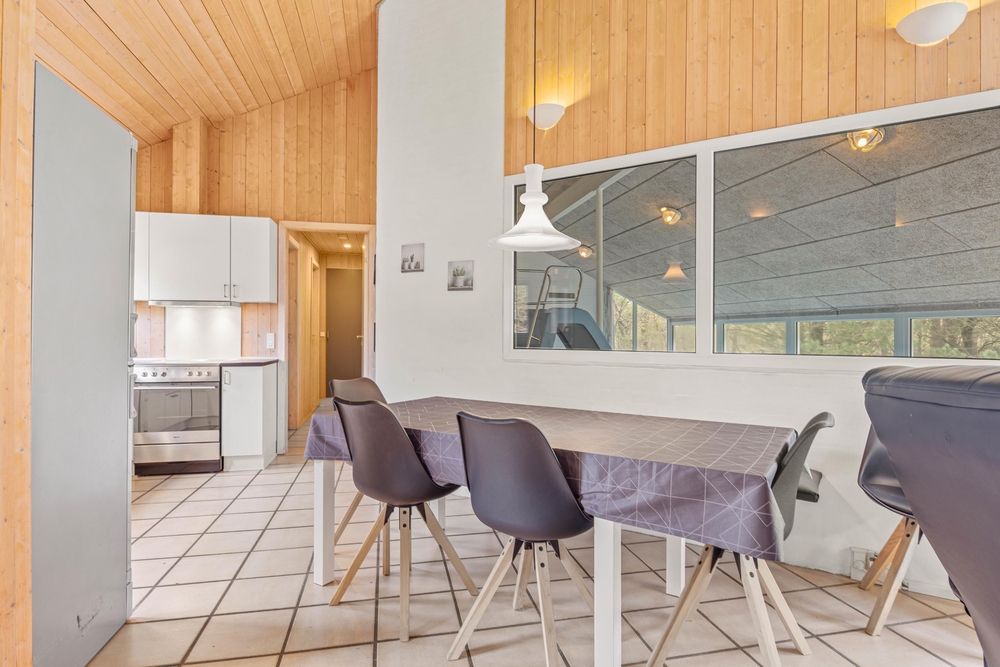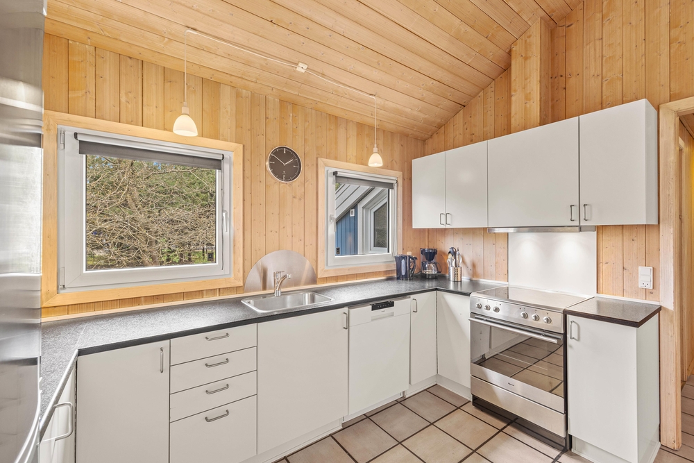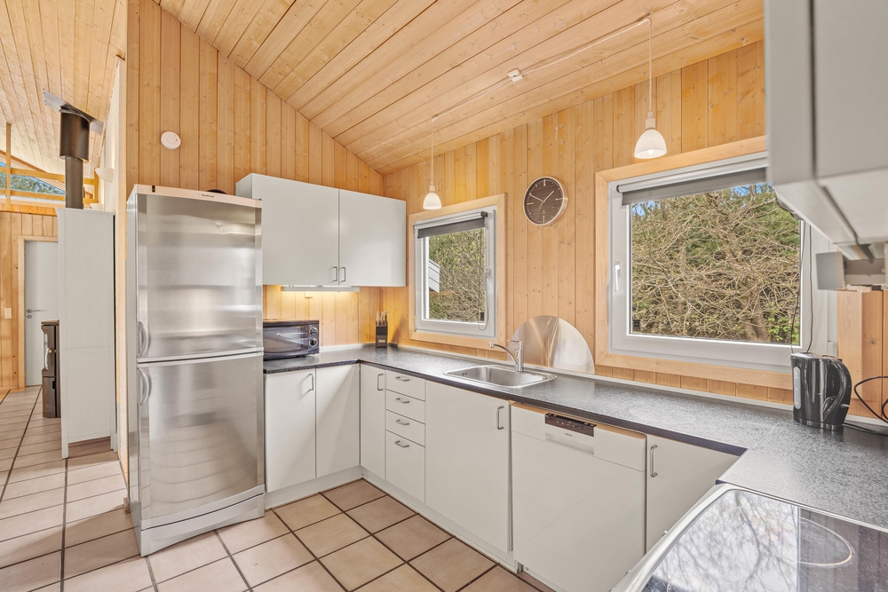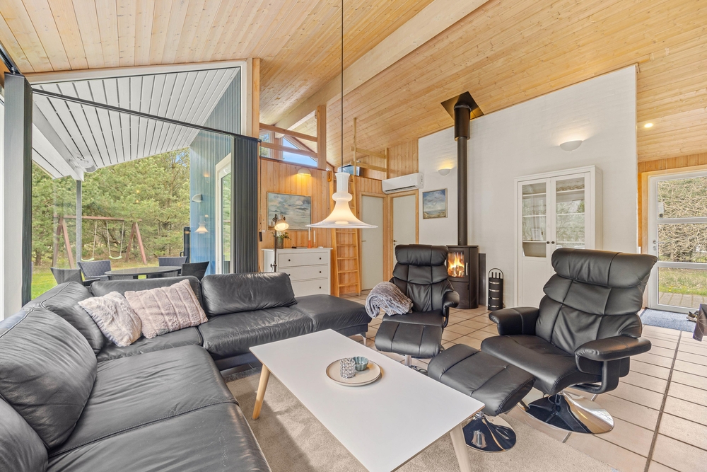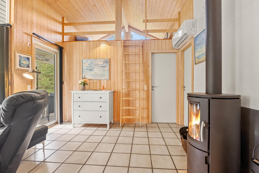 Im Zentrum dieses Ferienhauses steht der großzügige Wohnraum, der im typisch dänischen Stil eingerichtet ist. Helle Holztöne, hohe Decken und zahlreiche Fenster sorgen für eine Wohlfühlatmosphäre. Macht es euch auf dem Sofa bequem und lasst den Blick in euren Garten schweifen. Der Kaminofen sorgt für eine angenehme Wärme und strahlt Gemütlichkeit aus. Hier könnt ihr den Alltagsstress hinter euch lassen.