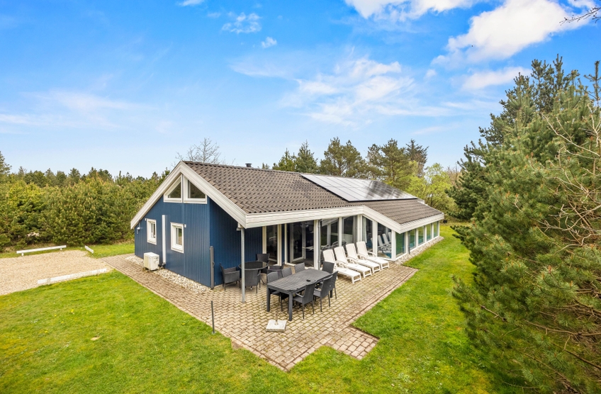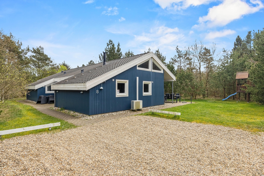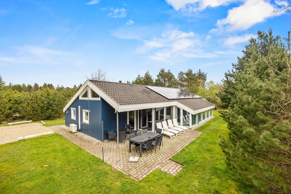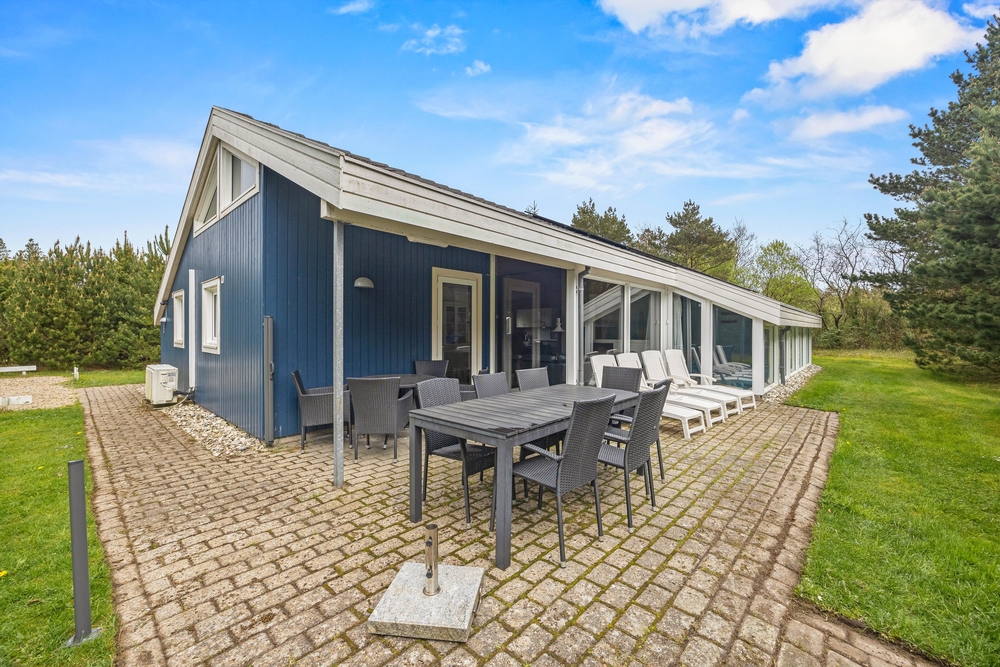 Hinter der Adresse Guldvangen 8 im Feriengebiet Houstrup, an der dänischen Westküste, verbirgt sich dieses schöne Ferienhaus mit Pool, Whirlpool, Sauna und Kamin. Auf 165 qm findet jeder einen Platz zum Entspannen oder um aktiv zu sein. Bis zu acht Personen und eure beiden Vierbeiner sind hier herzlich willkommen, sich rundum wohlzufühlen. Dank der beiden Wärmepumpen für Wasser und Wärme, halten sich die Energiekosten in Grenzen.