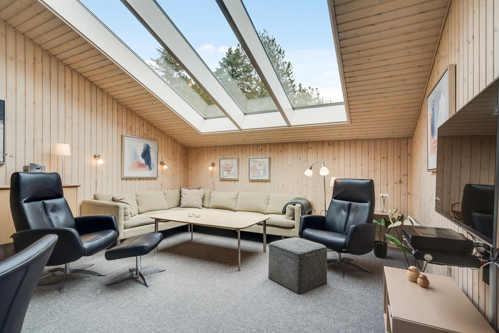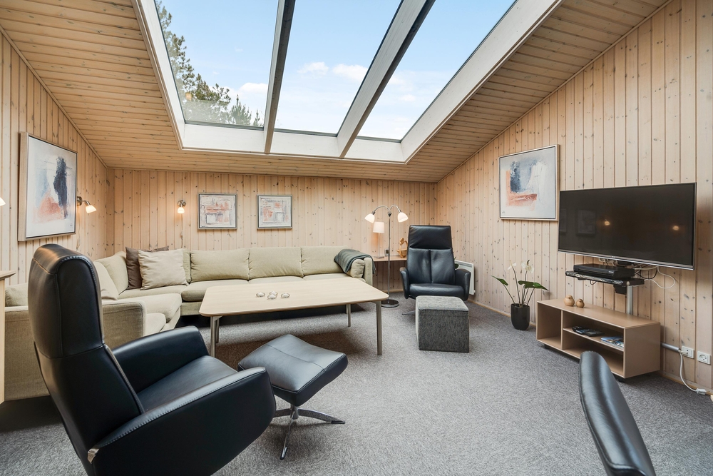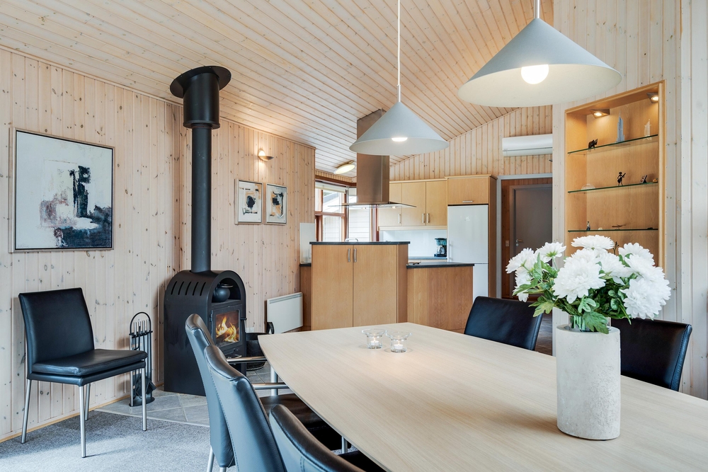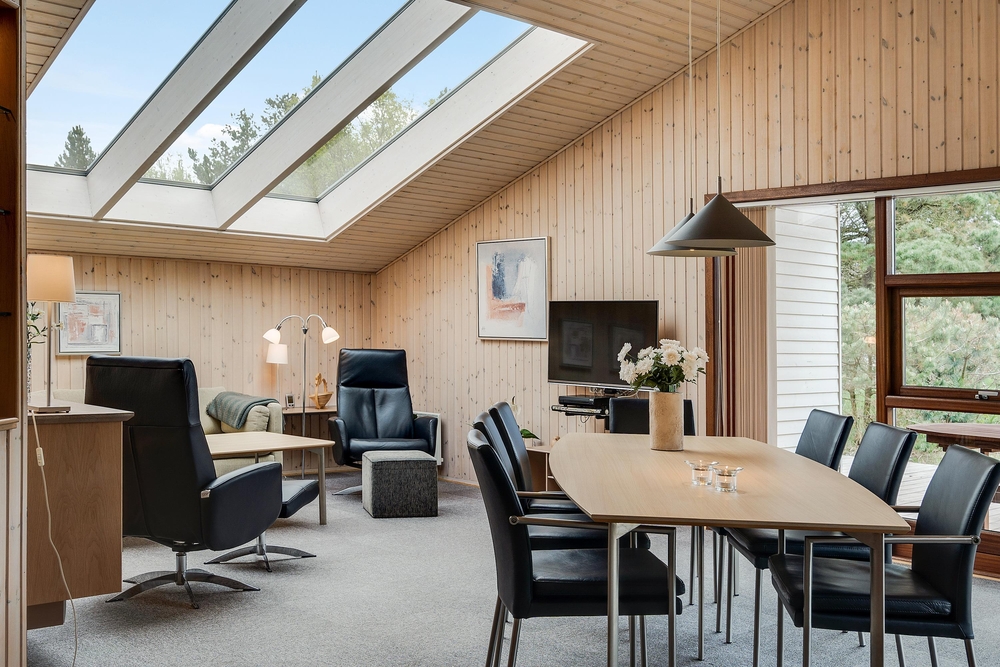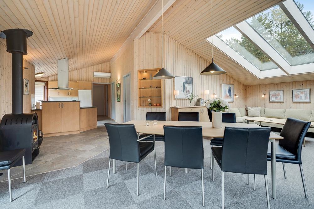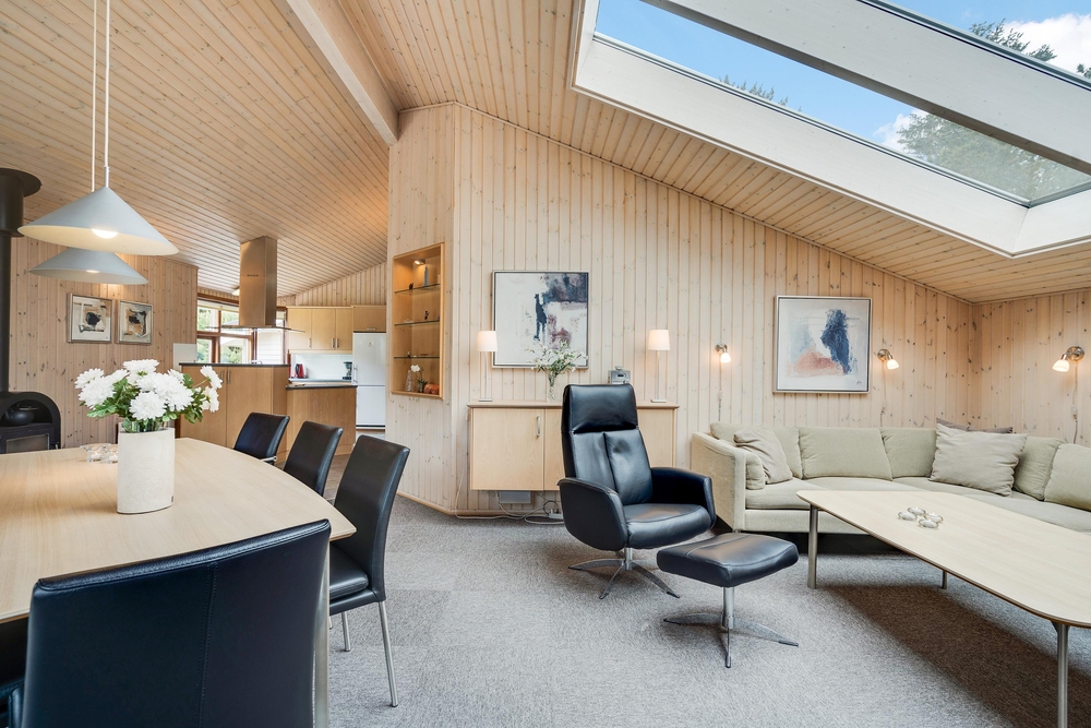 Das 105 Quadratmeter grosse Haus eignet sich perfekt für einen Familienurlaub. Die geschmackvolle Einrichtung, kombiniert mit den angenehmen warmen Holzfarben und den grossen Panoramafenstern sorgen für eine entspannte Ferienstimmung.