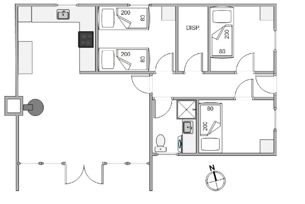 Das Ferienhaus hat zwei Schlafzimmer mit einem Doppelbett, und zwei Einzelbetten. Durch die ruhige Lage könnt ihr hier ganz ungestört ausschlafen und wieder neue Energie tanken. Das Badezimmer hat eine kleine Duschnische und eine Fußbodenheizung. Außerdem steht euch im Ferienhaus auch eine Waschmaschine zur Verfügung.