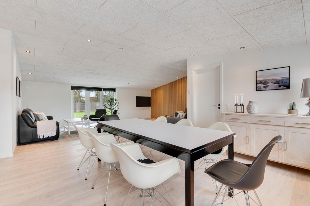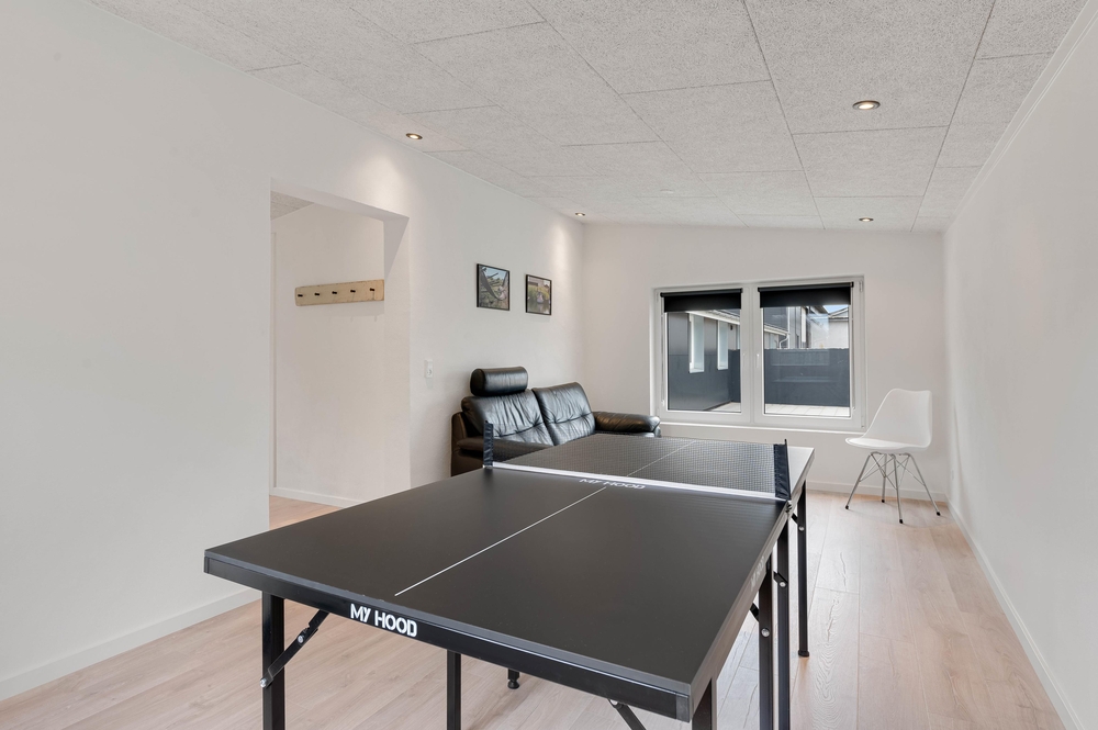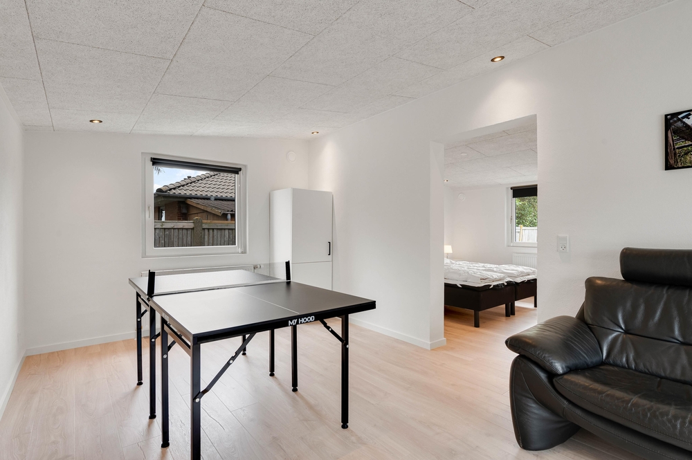 Der luftige Wohnbereich umfasst eine Küche, den Essbereich und das Wohnzimmer, welches mit dem großen Sofa viel Platz für entspannte Abende bietet. Legt die Beine hoch, vertieft euch in den neuesten Krimi oder veranstaltet einen Filmabend mit der ganzen Familie. Die Filme könnt ihr über den Chromecast streamen. Wer nicht stillsitzen möchte, kann viele lustige Stunden an der Tischtennisplatte im Aktivitätsraum verbringen, wo ihr im Duell den besten Tischtennisspieler des Urlaubs finden könnt.