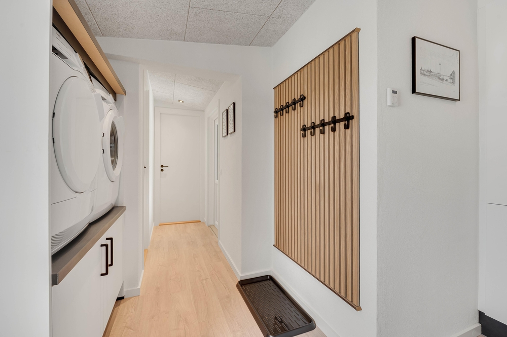 Mit Waschmaschine und Trockner, die im Eingangsbereich zu finden sind, stehen euch immer frische Handtücher für den kommenden Strandtag zur Verfügung.