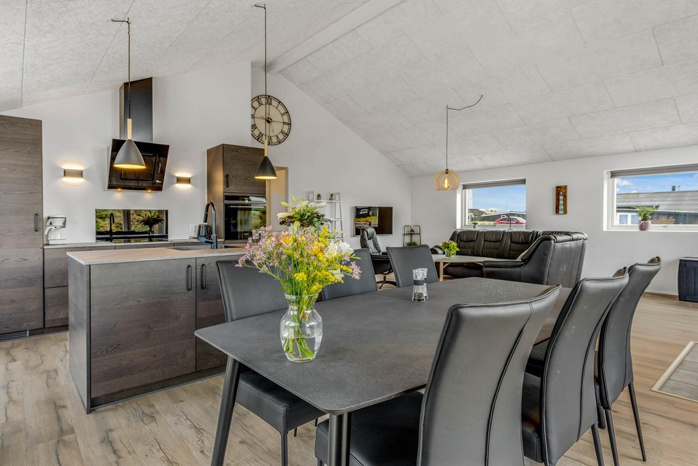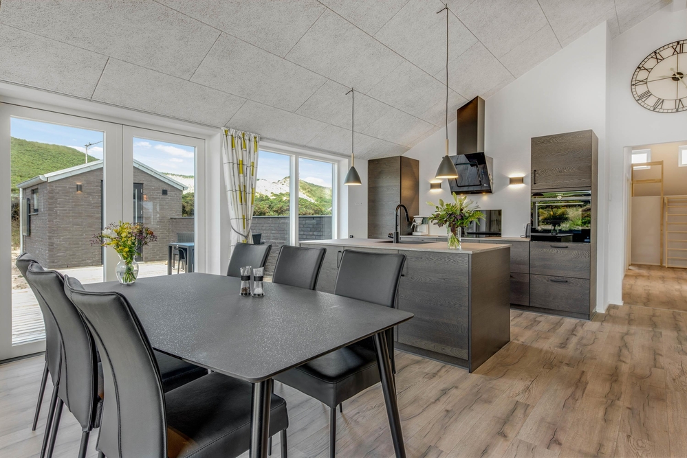 Das 6 Personenhaus wurde morden und stilvoll eingerichtet und eignet sich perfekt für die Großfamilie mit Hund oder zwei Paare, da es zwei Bäder hat. Der offene, helle und stilvoll eingerichtete Wohnraum ist das Zentrum des Hauses. Die Küche ist schick und praktisch eingerichtet und bietet unter anderem Geschirrspüler und Mikrowelle, ebenso befindet sich auch eine extra Gefriertruhe (125l) im Haus.