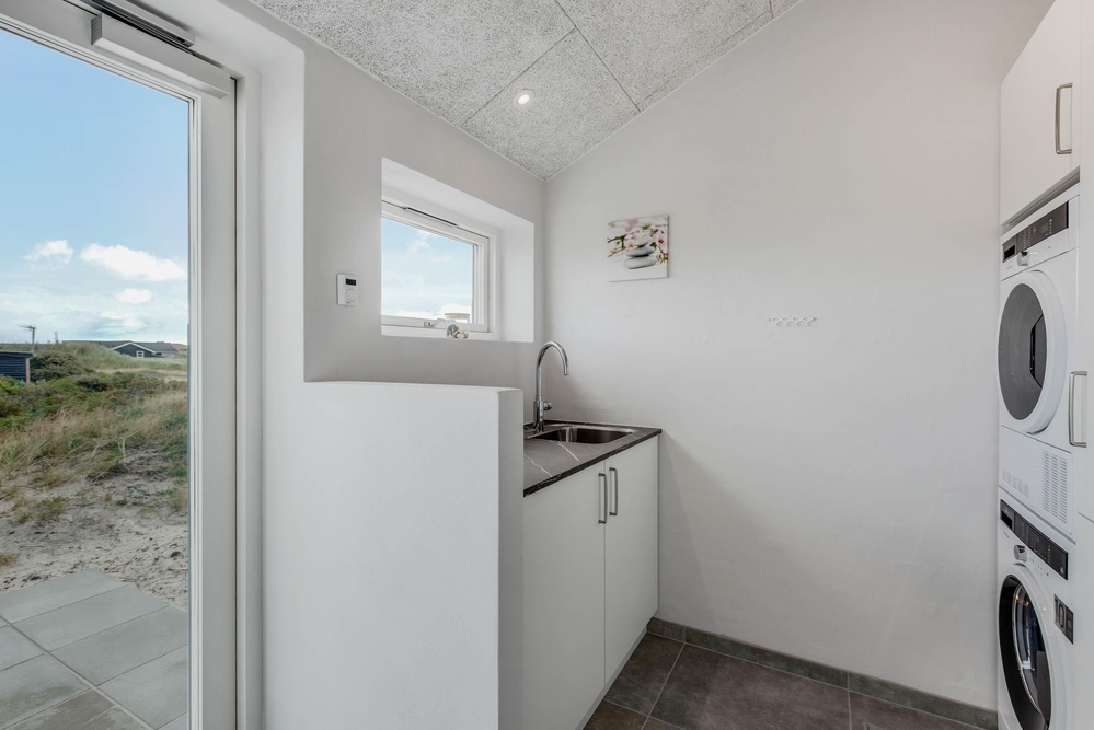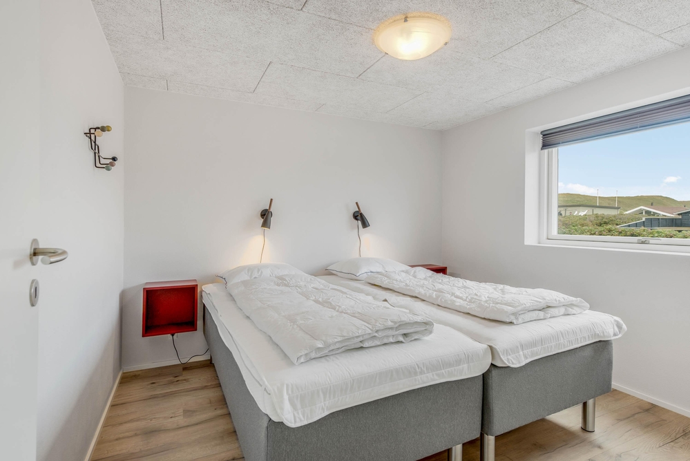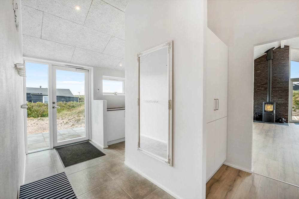 Ihr wohnt in erster Reihe zu der Dünenlandschaft mit nur 150m zum weiten Nordseestrand. Nicht nur das Meer, sondern auch der Ringköbing Fjord bietet euch viele Wassersportmöglichkeiten, so könnt ihr in unmittelbarer Umgebung den beliebten Surfspot von Hvide Sande Süd besuchen oder direkt in Hvide Sande auf Wasserski stehen. Für eine Fahrradtour bietet sich der Naturwanderweg entlang der Dünen- und Heidelandschaft an. Nur 3 km nördlich liegt der Fischerort Hvide Sande, hier findet ihr viele Geschäfte, Restaurants und Cafés.