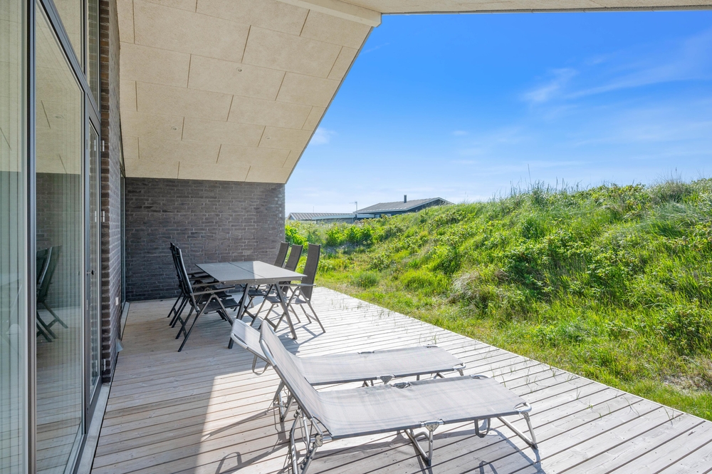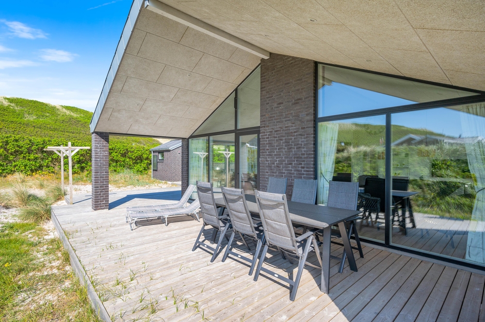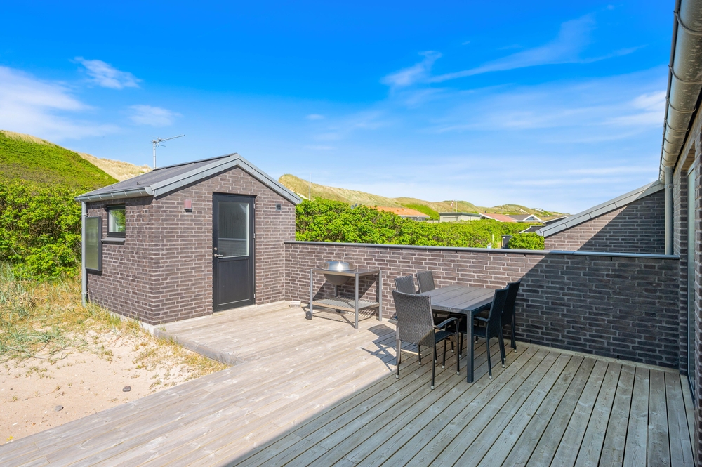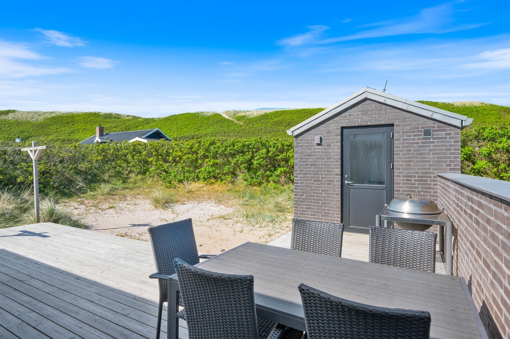 Auf der Terrasse, die sich zu mehreren Seiten des Hauses erstreckt könnt ihr die Sonne in vollen Zügen genießen. Am Abend könnt ihr den Grill anheizen und ein leckeres Abendbrot für die Familie im Freien zubereiten. Anschließend könnt ihr den Abend bei einem Gläschen Wein auf der geschützten Terrasse ausklingen lassen, während die Sonne hinter den Dünen versinkt und das Meer im Hintergrund rauscht.