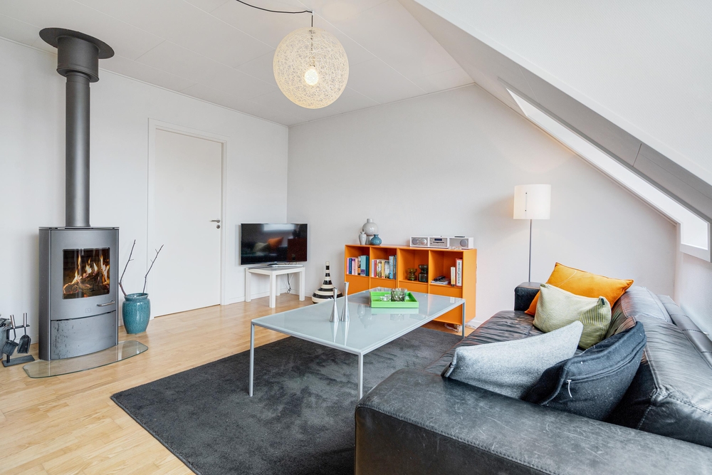 Das gemütlich und geschmackvoll ausgestattete Wohnzimmer mit Kamin und einem nach Westen ausgerichtetem Balkon sowie 2 weitere Schlafzimmer