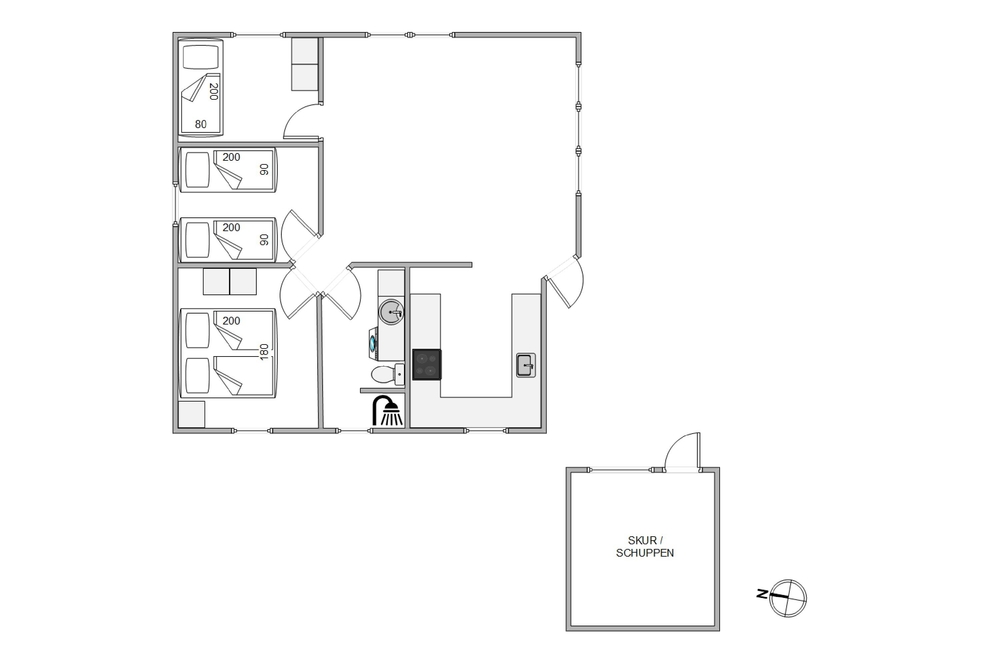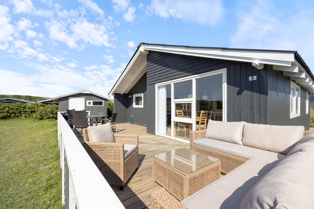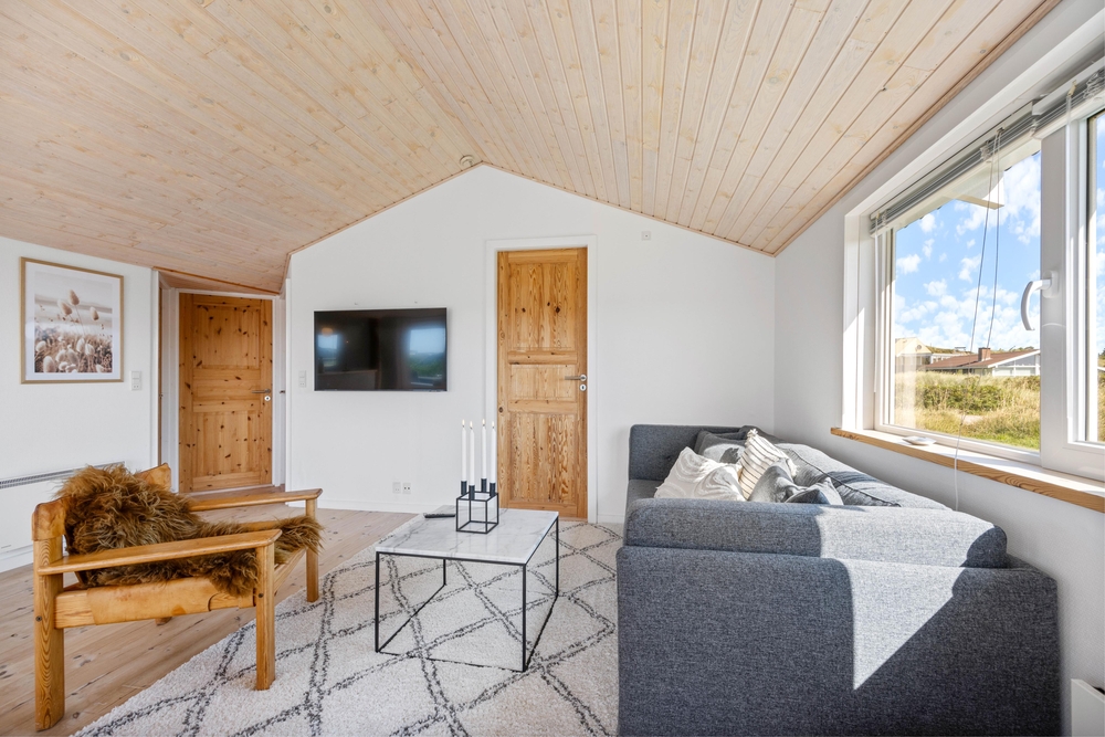 Nur 200 Meter trennen euch vom wunderbaren Sandstrand von Årgab, wo ihr viele Stunden in der Sonne verbringen oder erfrischende Spaziergänge unternehmen könnt. Das weitläufige, größtenteils abgeschirmte Grundstück von 1.376m2 mit seinem gepflegten Rasen lädt zu allerlei Outdoor-Aktivitäten ein. Eure Kinder und euer Hund können hier herumtoben und spielen, während ihr die Ruhe auf der Terrasse genießt. Hier könnt ihr entspannen, den Grill anwerfen und gemeinsam köstliche Mahlzeiten im Freien genießen.