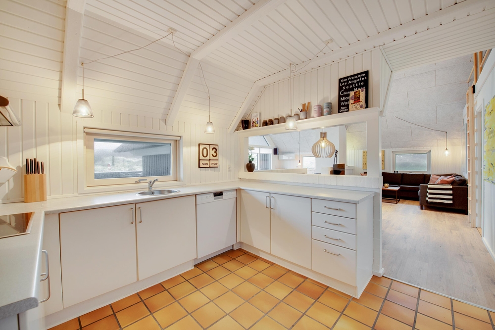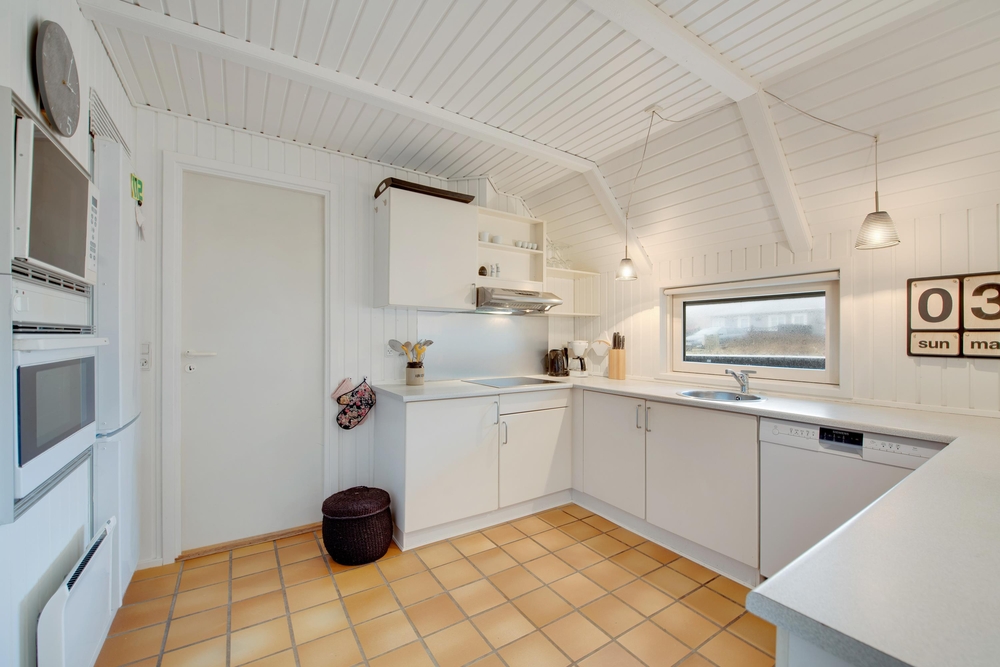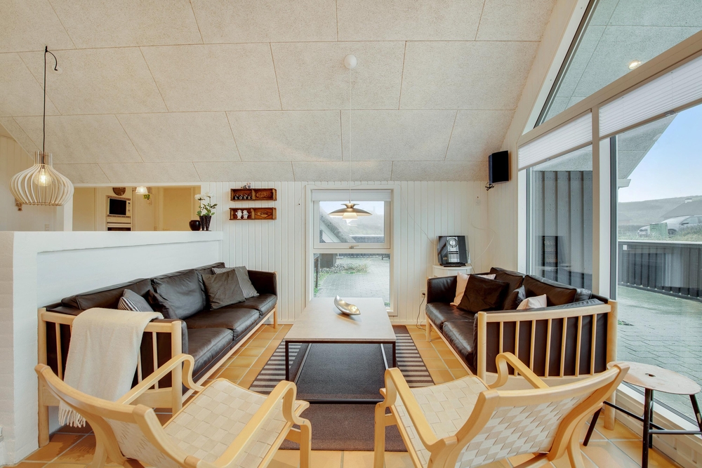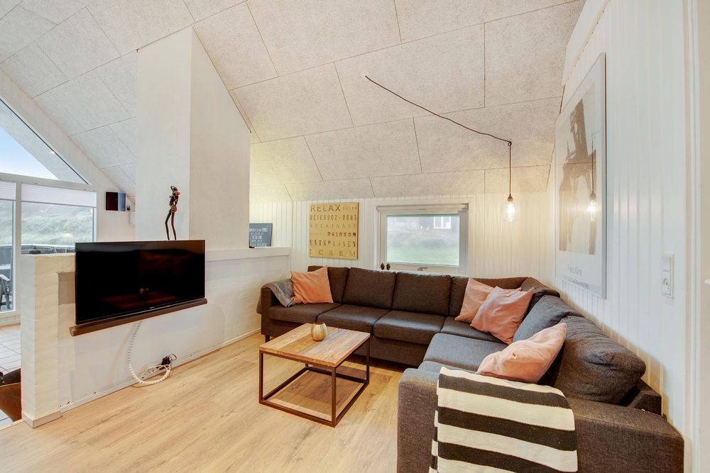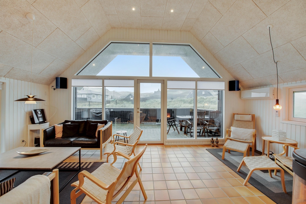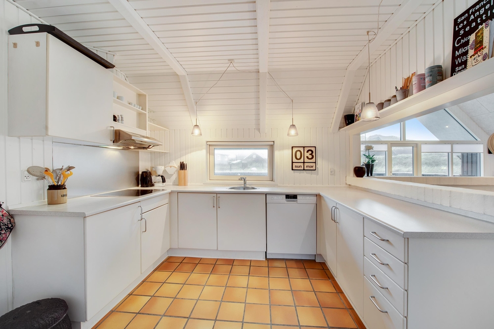 Das Ferienhaus begrüßt euch mit einem offenen Wohnkonzept. Ob beim Kochen oder beim Pläneschmieden am Esstisch, keiner wird ausgeschlossen. Hier herrscht eine gute Atmosphäre, wo ihr schöne Ferien verbringen könnt. Wenn ihr gemeinsam am Abend gekocht habt, übernimmt die Spülmaschine den Abwasch und ihr könnt zum gemütlichen Teil des Abends übergehen. In der kühleren Jahreszeit, wenn der Wind ums Haus tost, dann macht den Holzofen an und genießt die kuschelige Ferienhausatmosphäre. Für eine angenehme und konstante Raumtemperatur sorgt die energisparende Luft-zu-Luft Wärmepumpe.
