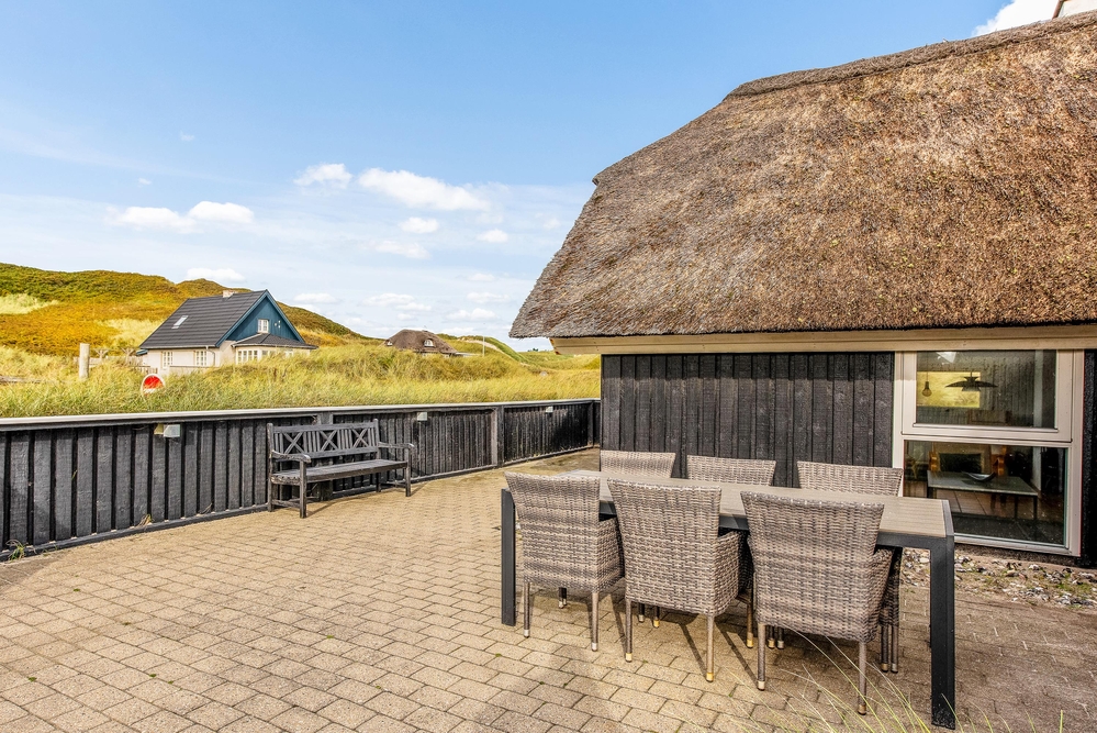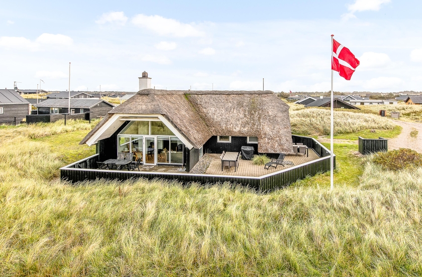 Das schöne reetgedeckte Ferienhaus im Hafavej 103 in Søndervig strahlt echte Ferienhausstimmung aus und bietet Platz für bis zu 6 Personen und 1 Hund. Keiner kann abhandenkommen, da die Terrasse geschlossen ist. Hier kann Urlaub nur 100 m von der Nordsee und unweit von Søndervigs gemütlichem Ortszentrum gemacht werden.