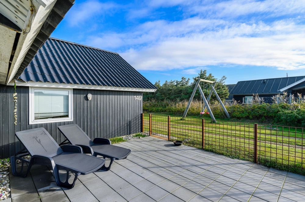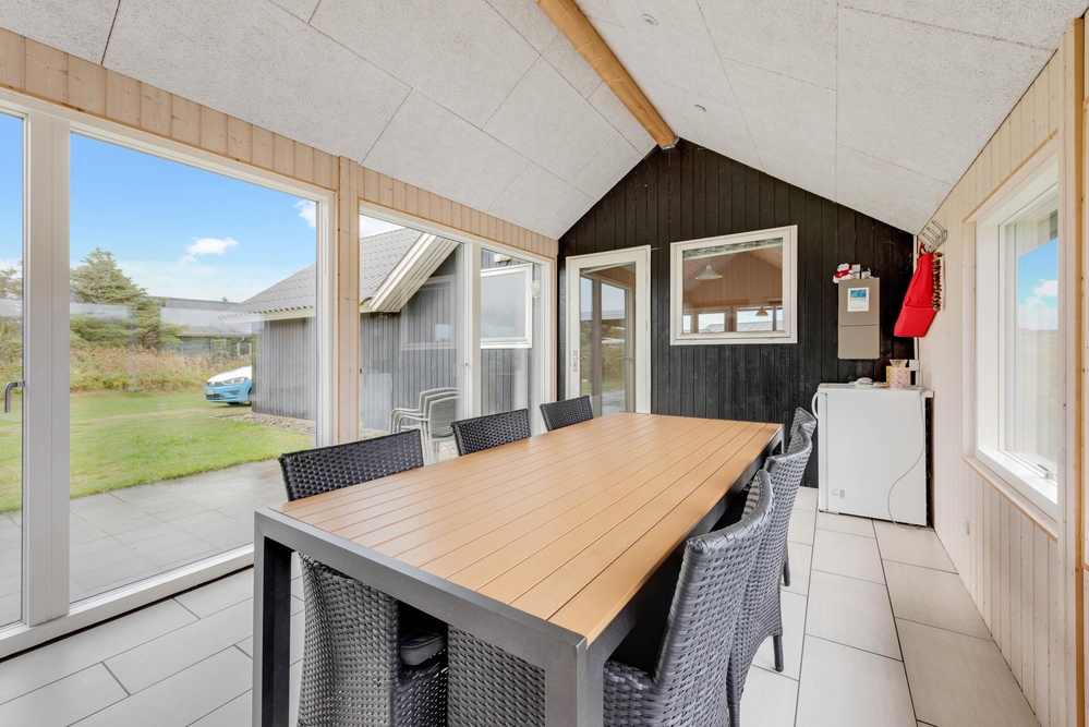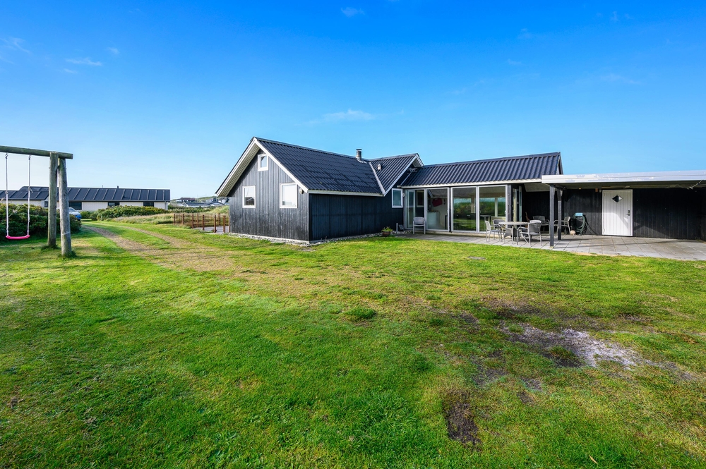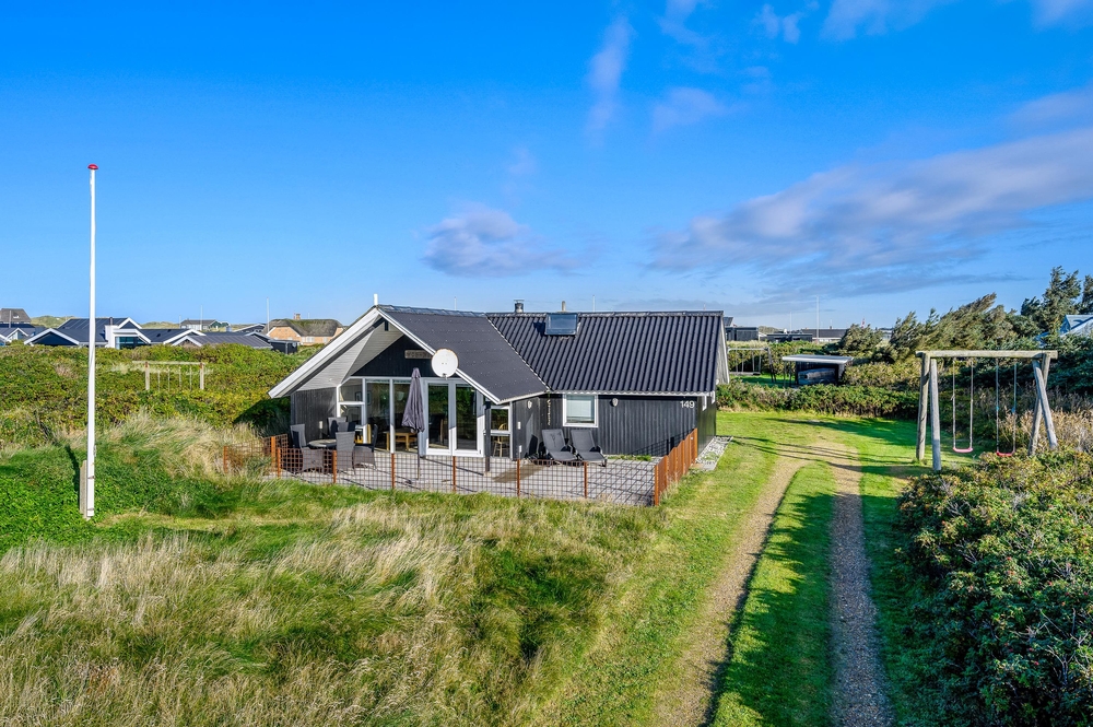Es ist ein schöner Platz für Kinder und den Familienhund. Darüber hinaus ist die Luft das ganze Jahr über herrlich frisch. Die Nordsee und die Dünen liegen sehr nah am Ferienhaus, Sondervigs Zentrum ist nur einen kurzen Fußweg entfernt. Der nahe Golfplatz mit 27 Löchern, einige davon nur wenige hundert Meter vom Haus entfernt, kann fast ganzjährig bespielt werden.