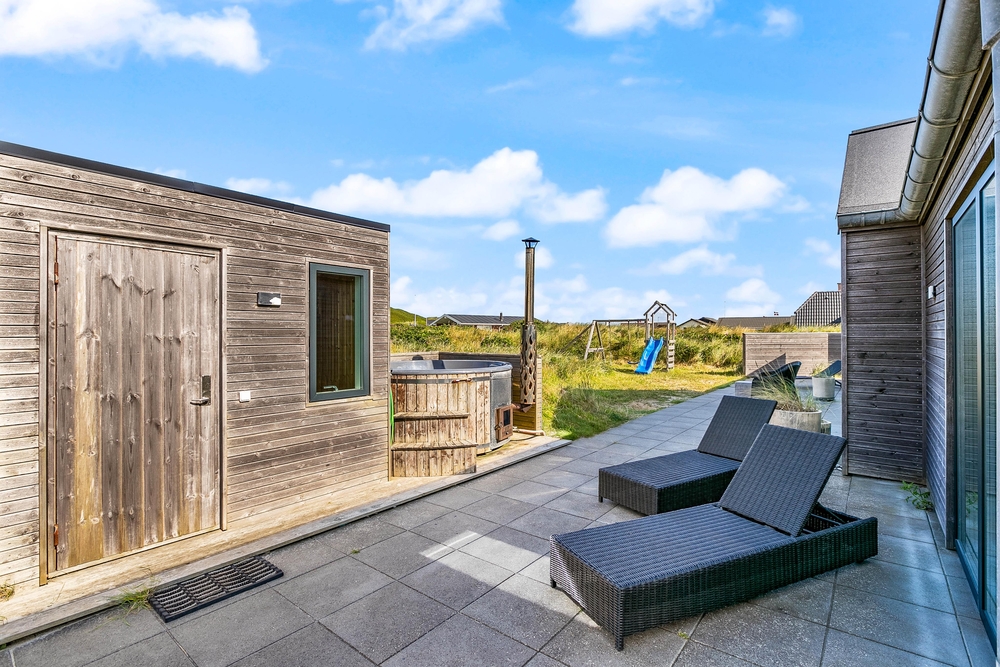 Im Hafavej 22 in Søndervig liegt dieser Traum eines Ferienhauses. Das in 2019 erbaute Ferienhaus ist stilvoll und im skandinavischem Touch eingerichtet. Eine Sauna und ein Wildmarksbad sind die Highlights! Als Sahnehäubchen gibt es noch die wunderschöne Lage des Hauses, nur 200 Meter von der Nordsee und nur wenige Gehminuten vom Zentrum Søndervigs entfernt.