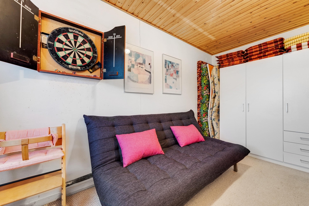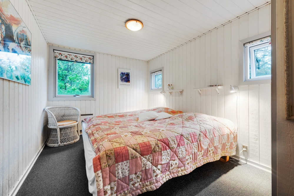Die Schlafzimmer haben noch den Charme eines ursprünglichen skandinavischen Sommerhauses und sind geräumig. Hier könnt ihr am Morgen die Vögel durch das geöffnete Fenster zwitschern hören, während die Sonne leicht über die Baumwipfel streift.