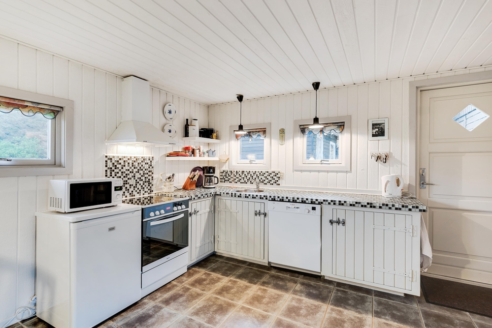 Die charmante Küche bietet alle elektrischen Geräte einer modernen Küche, so findet ihr einen Geschirrspüler, Mikrowelle und einen Elektroherd. Im Nebengebäude findet ihr viele Spiele für den Außenbereich und einen Hauswirtsachftsraum mit Waschmaschine, Trockner einen Gefrierschrank (105 L) und einen seperaten Kühlschrank, was besonders bei langen Aufenthalten von Vorteil ist.