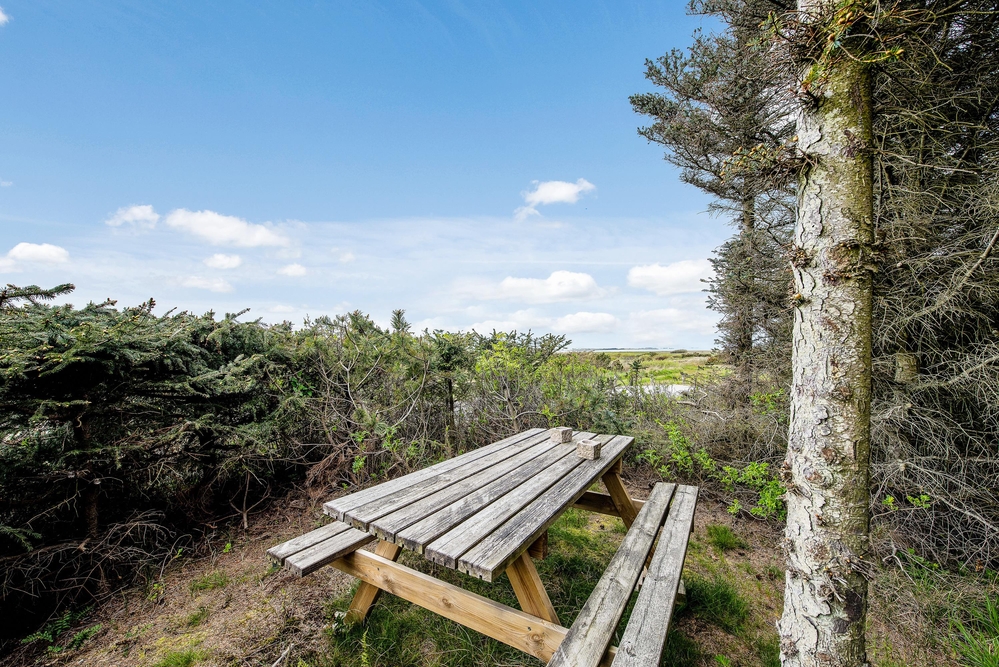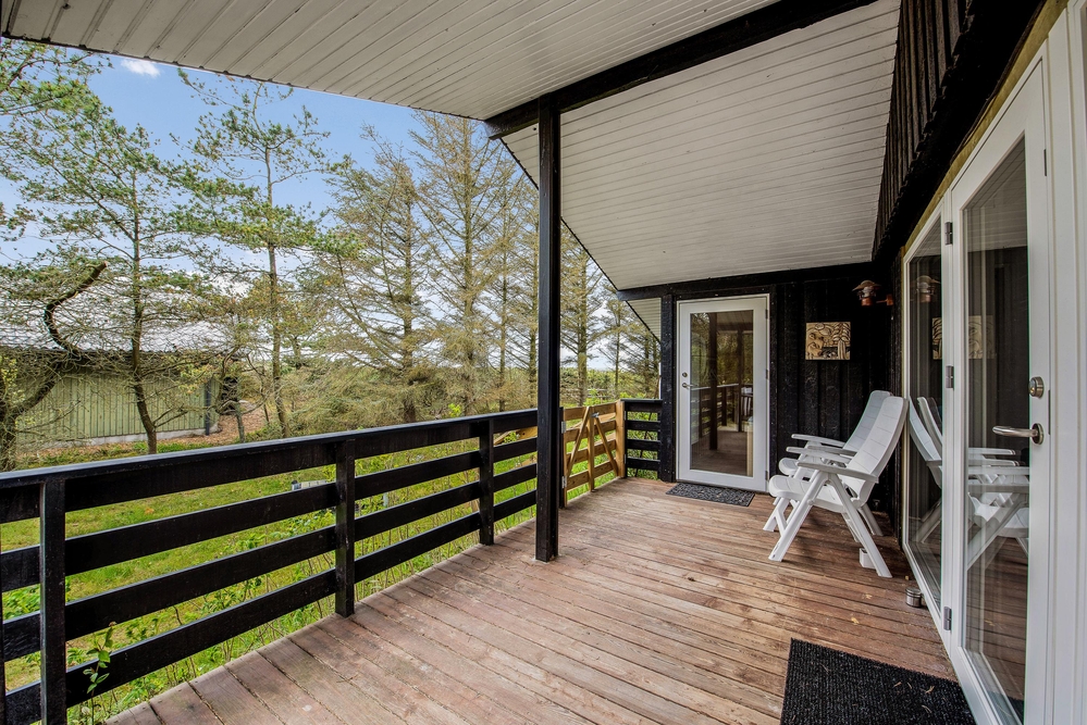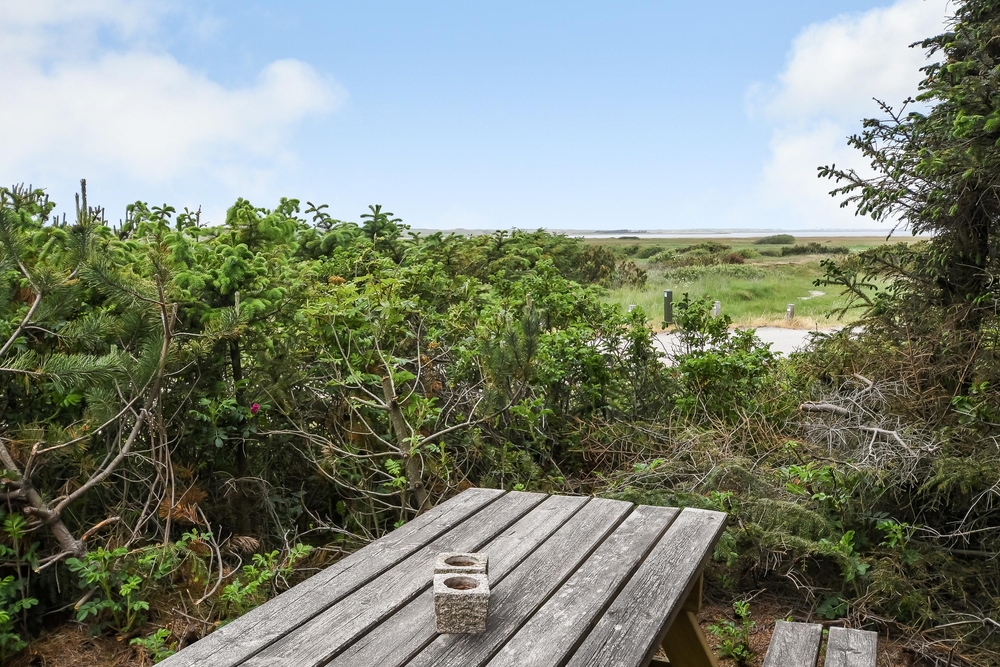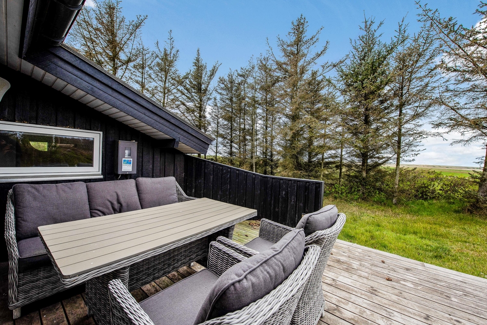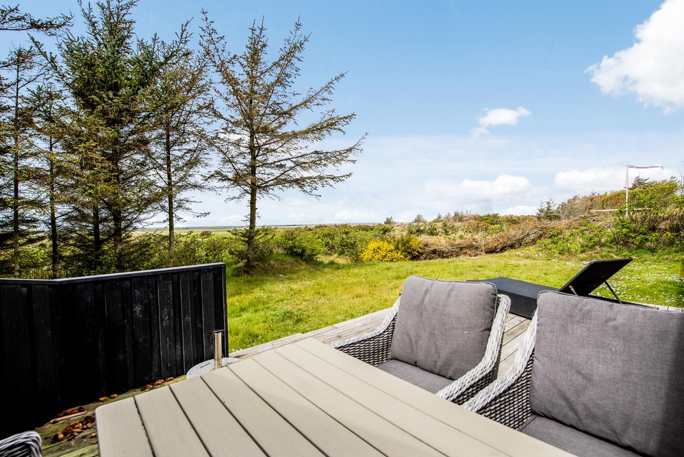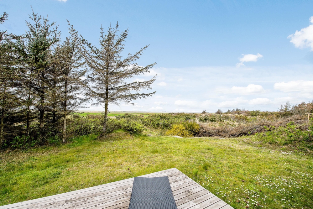 Das Ferienhaus hat sowohl eine Terrasse nach Osten und Westen. Vom Wohnzimmer aus erreicht ihr die nach Westen ausgerichtete Terrasse, von wo aus ihr einen einmaligen Blick über die offenen Felder und Wiesen sowie den Nissum Fjord habt. Auf der nach Osten ausgerichteten Terrasse trinkt ihr morgens den ersten leckeren Kaffee und genießt die ersten Sonnenstrahlen des Tages, während die Vögel zwitschern und die Westküste leise erwacht.
