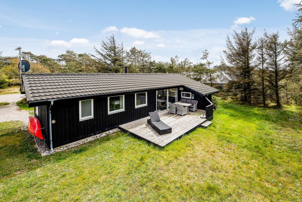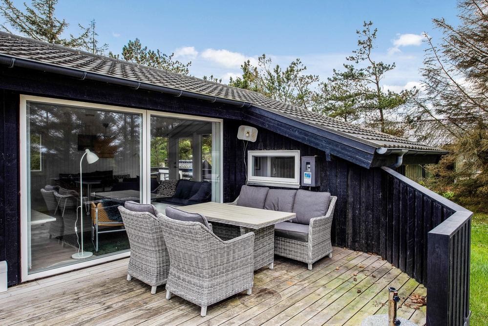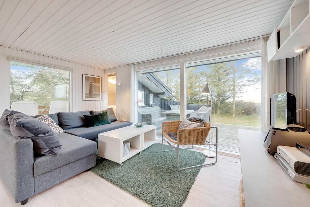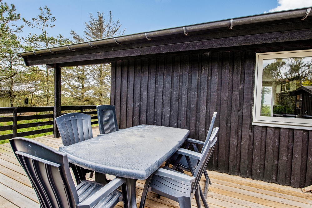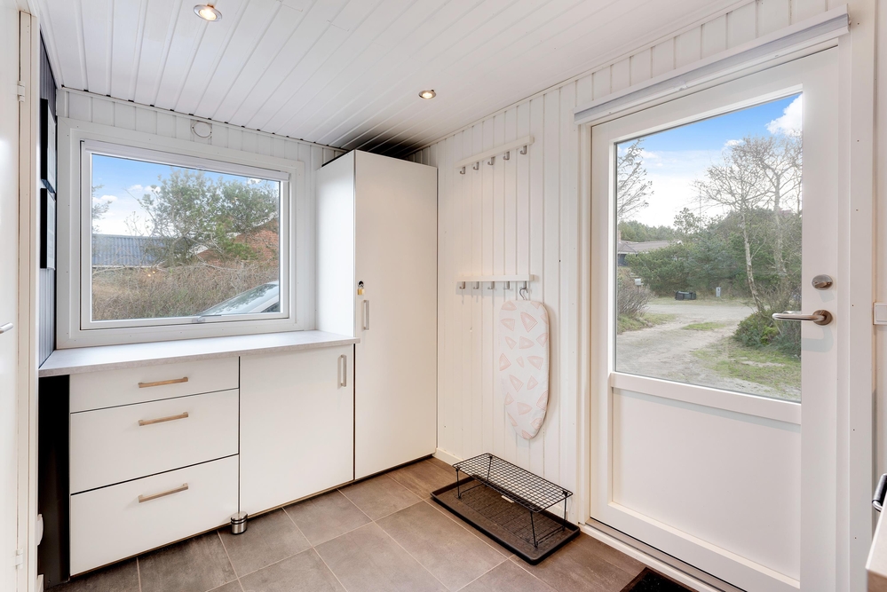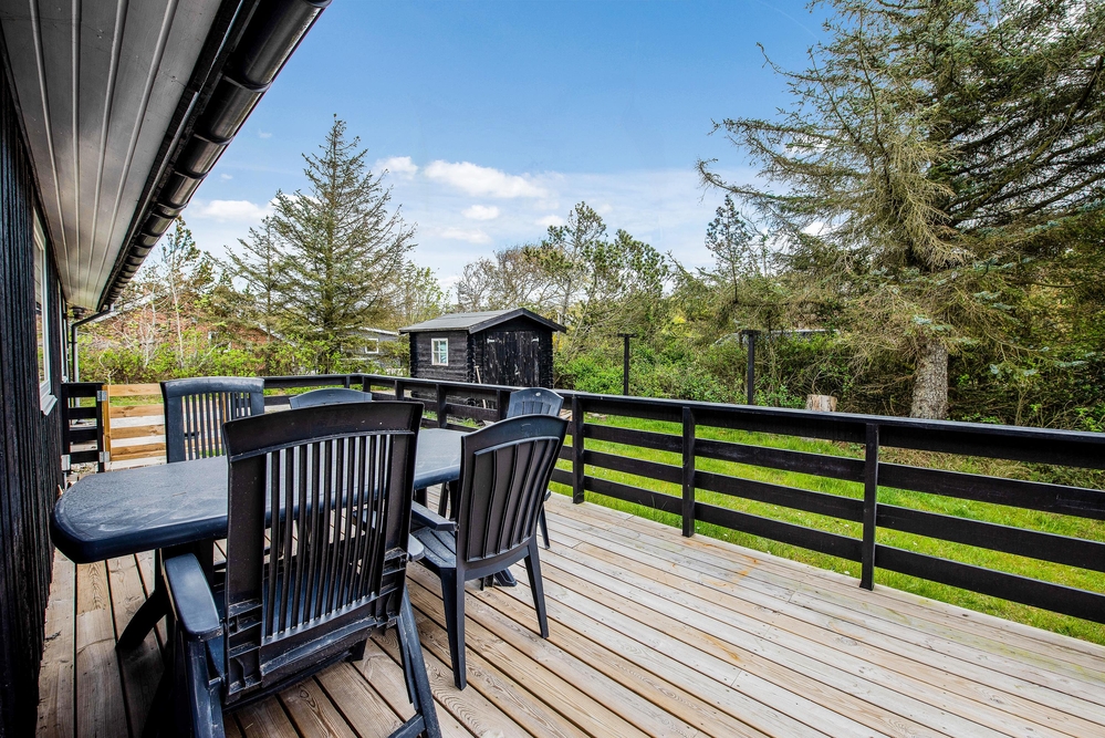 Das Ferienhaus hat sowohl eine Terrasse nach Osten und Westen. Vom Wohnzimmer aus erreicht ihr die nach Westen ausgerichtete Terrasse, von wo aus ihr einen einmaligen Blick über die offenen Felder und Wiesen sowie den Nissum Fjord habt. Auf der nach Osten ausgerichteten Terrasse trinkt ihr morgens den ersten leckeren Kaffee und genießt die ersten Sonnenstrahlen des Tages, während die Vögel zwitschern und die Westküste leise erwacht.