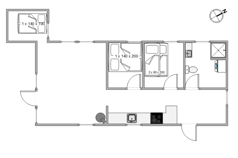 Das Ferienhaus bietet Platz für bis zu 6 Personen und hat drei Schlafzimmer. Zwei Schlafzimmer wurden mit einem Doppelbett ausgestattet, das dritte Schlafzimmer hat ein Etagenbett. Das Badezimmer hat eine Fußbodenheizung,damit der Tag warm und entspannt beginnen kann.