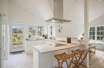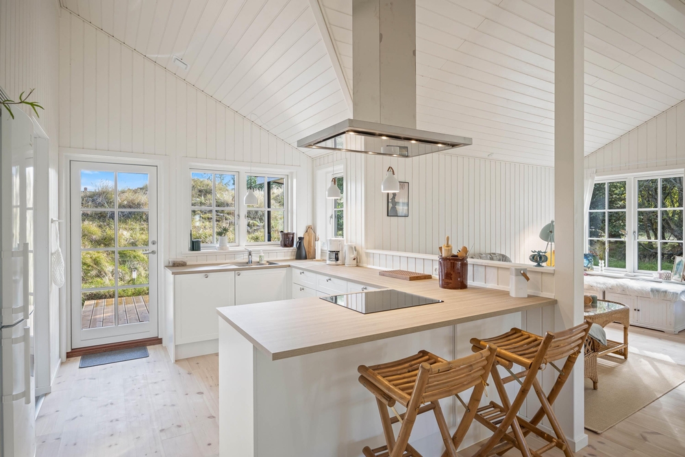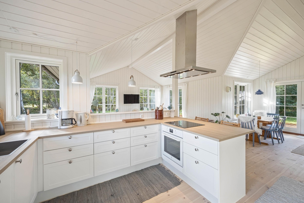 In der modernen Küche mit Induktionsherd könnt ihr euren Kochkünsten freien Lauf lassen. Die Arbeitsplatte ist groß genug, dass alle beim Zubereiten mithelfen können. Der offene Wohnbereich ist an Gemütlichkeit kaum zu überbieten. Helle Farben mit viel Holz, dazwischen Kissen und Felle, sorgen für ganz viel extra ?Hygge?. Im modernen Badezimmer mit Fußbodenheizung und Dusche habt ihr alles, was man so braucht. Eure Kinder werden sich besonders über den ausgebauten Teil unter dem Dach freuen. Hier kann man es sich richtig ungestört mit einem Buch gemütlich machen, oder eine Höhle bauen.