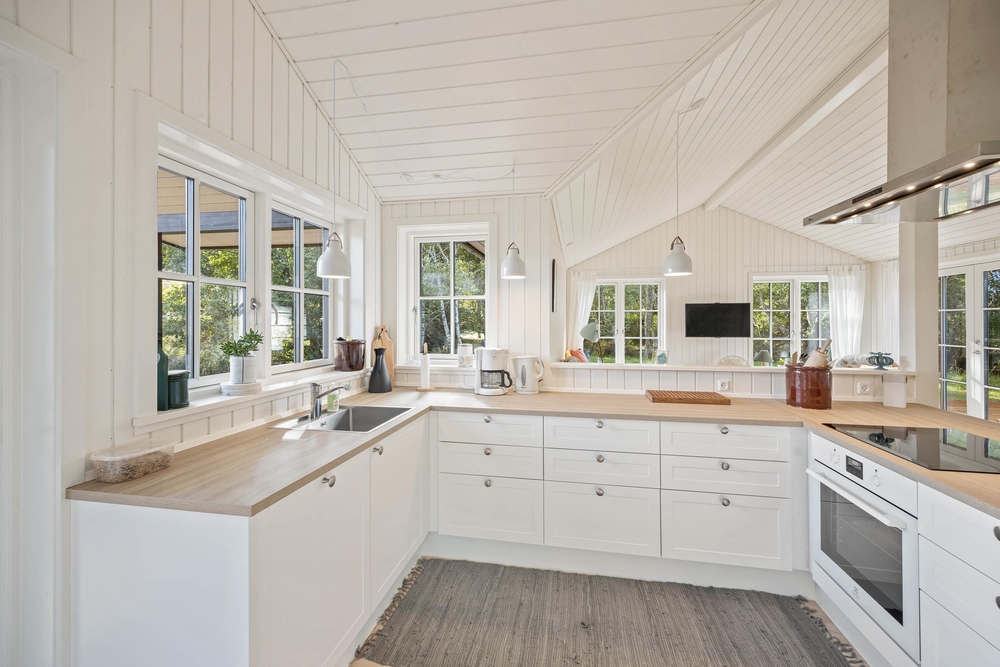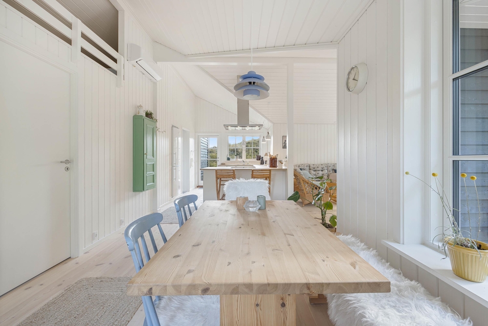 Gemütlichkeit und die Liebe zum Detail begegnen euch in diesem Ferienhaus überall. Hier kann man sich einfach nur sofort zu Hause fühlen. Es gibt insgesamt drei schöne Schlafzimmer, eins mit Doppelbett und die anderen beiden mit jeweils zwei Einzelbetten. Es erwarten euch helle Räume, die im nordischen Stil eingerichtet sind.