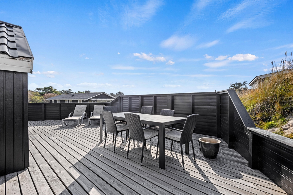 Das über 1500 Quadratmeter große Naturgrundstück bietet viele Möglichkeiten, Zeit im Freien zu verbringen. Die Terrasse, die das Ferienhaus umgibt, ist teilweise geschützt. Je nach Wetterlage und Sonnenstand findet ihr immer ein ruhiges Plätzchen an der frischen Seeluft. Entspannt euch auf den Sonnenliegen oder setzt euch in den Schatten auf die Gartenmöbel.