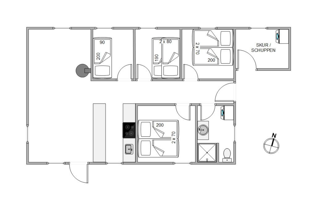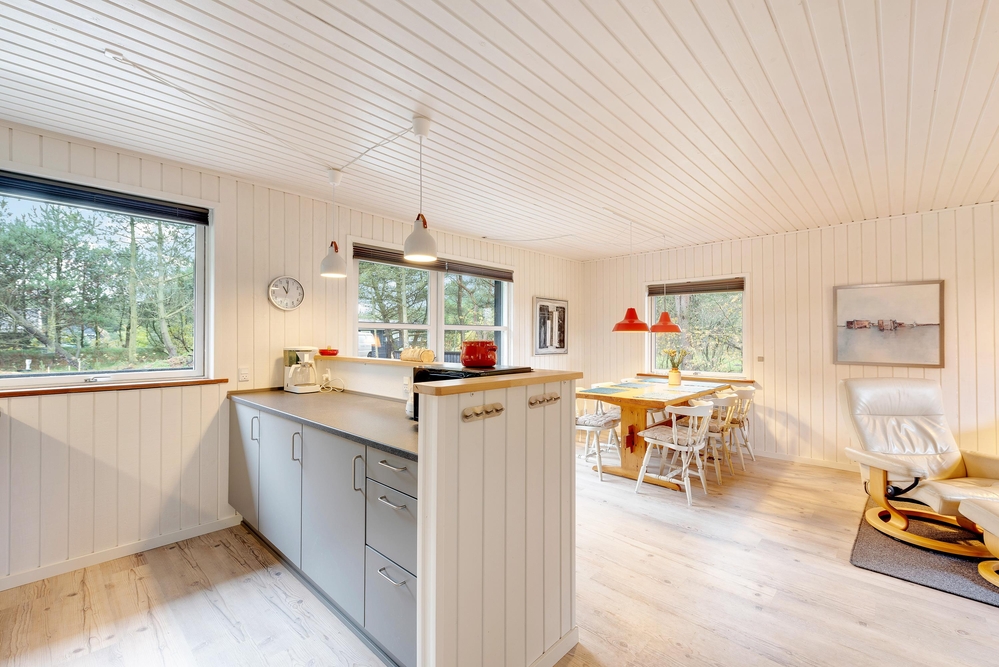 Dieses erst kürzlich renovierte Ferienhaus ist gemütlich eingerichtet und der Wohnraum ist in offener Verbindung mit der gut ausgestatteten modernen Küche. Moderne Elektrogeräte wie Spülmaschine, Waschmaschine und Trockner erleichtern Euch die anfallenden Hausarbeitern. Natürlich steht Euch auch eine stabile und schnelle Internetverbindung zur freien Verfügung.