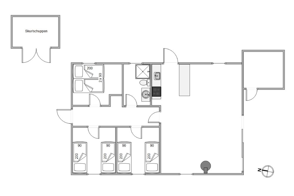 Das Ferienhaus im Hans Hansensvej 69 liegt auf einem Rasengrundstück, das viel Platz für Aktivitäten aller Art bietet. Hier können die Kinder unbesorgt spielen, während ihr die Sonne genießt oder ein Buch lest. Die überdachte Terrasse lädt dazu ein, auch bei weniger sonnigem Wetter draußen zu sein und die frische Luft zu genießen. Der Grillplatz bietet genug Platz, um gemütliche Grillabende mit Familie und Freunden zu verbringen. Hier könnt ihr nach Herzenslust grillen und laue Sommerabende mit köstlichen Speisen und Getränken verbringen.