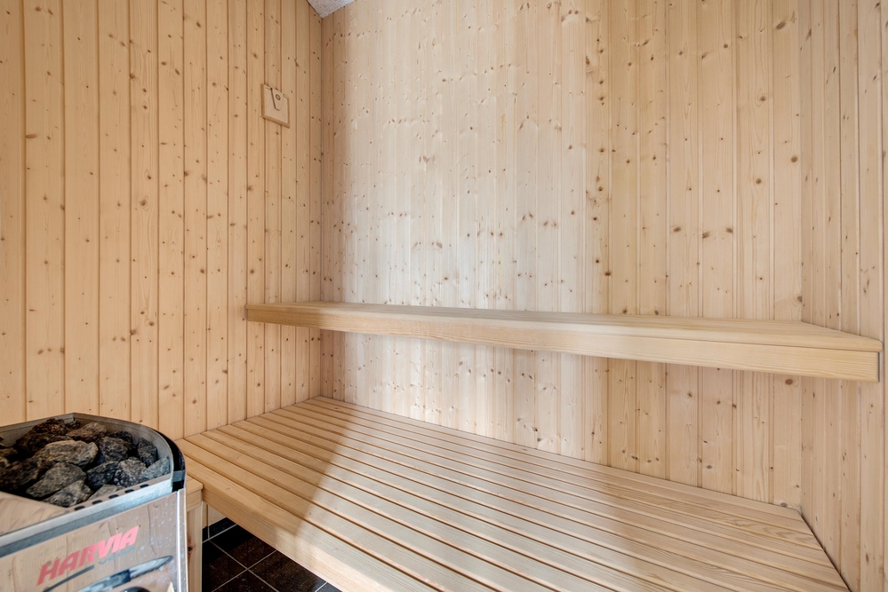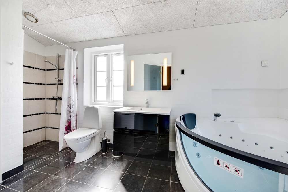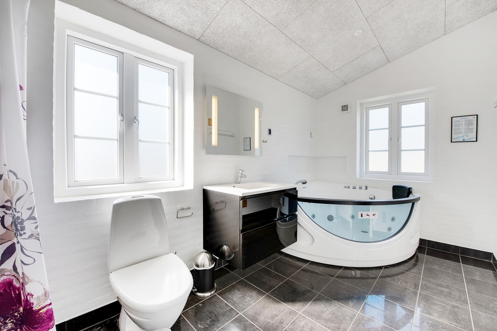 Im Inneren des Hauses findet ihr alles, was ein Urlaub ausmacht. Das geräumige Haus verfügt über insgesamt 3 Badezimmer (zwei davon mit Zugang von den Schlafräumen), was besonders am Morgen sehr praktisch ist. Im Ferienhaus findest du auch einen Whirlpool sowie eine Sauna. Vergesst euren Alltag und taucht in das warme und sprudelne Nass ab. Wer einmal besonders wärmebedürftig ist, entspannt in der hauseigenen Sauna.