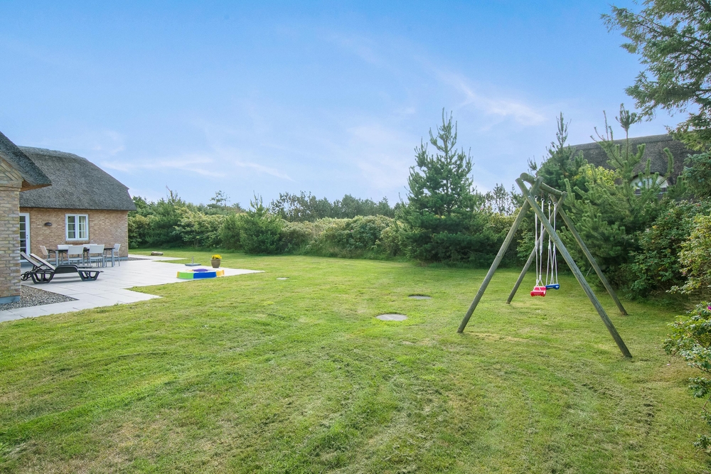 Das Haus liegt auf einem schönen großen Grundstück mit viel Platz auf der Terrasse zum Ausruhen oder, um Spiele zu spielen. Auf dem Rasen gibt es viel Platz für die Kleinsten. Das Schaukelgerüst und der Sandkasten ist ein Hit für die Kinder. Diese werden sich austoben und können spielen, während du in Ruhe auf der Terrasse z.B. Sonnenbaden kannst. Wird es dir zu warm, kannst du dich unter der Außendusche vom 1. April bis zum 31. Oktober abkühlen lassen.