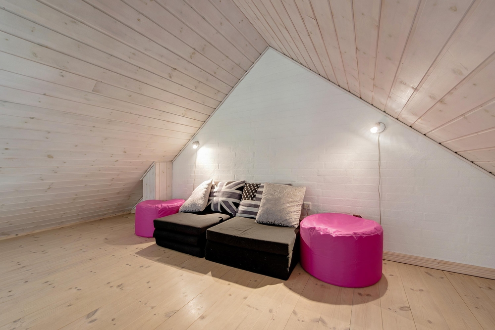 Vom Wohnzimmer führt eine Leiter auf den Schlafboden (Hems), welcher immer ein beliebter Platz bei den Kindern ist, so sind sie für sich und trotzdem nah bei der Familie.
