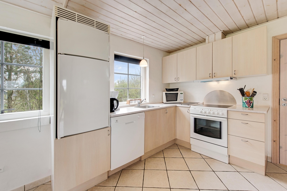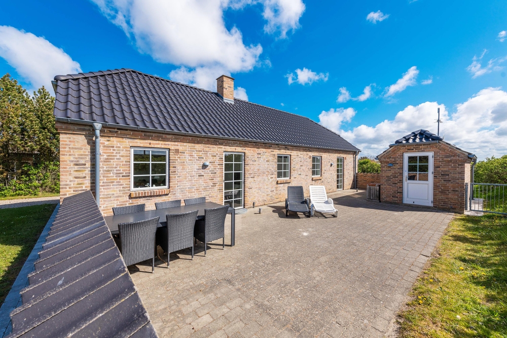 Nah an Søndervigs Zentrum liegt dieses schöne Ferienhaus. Das Haus ist hell und freundlich eingerichtet, vom Wohnzimmer und einem Schlafzimmer habt Ihr Zugang zu den schönen Terrassen, wo auch ein Sandkasten und eine Schaukel für die Kinder aufgestellt ist.