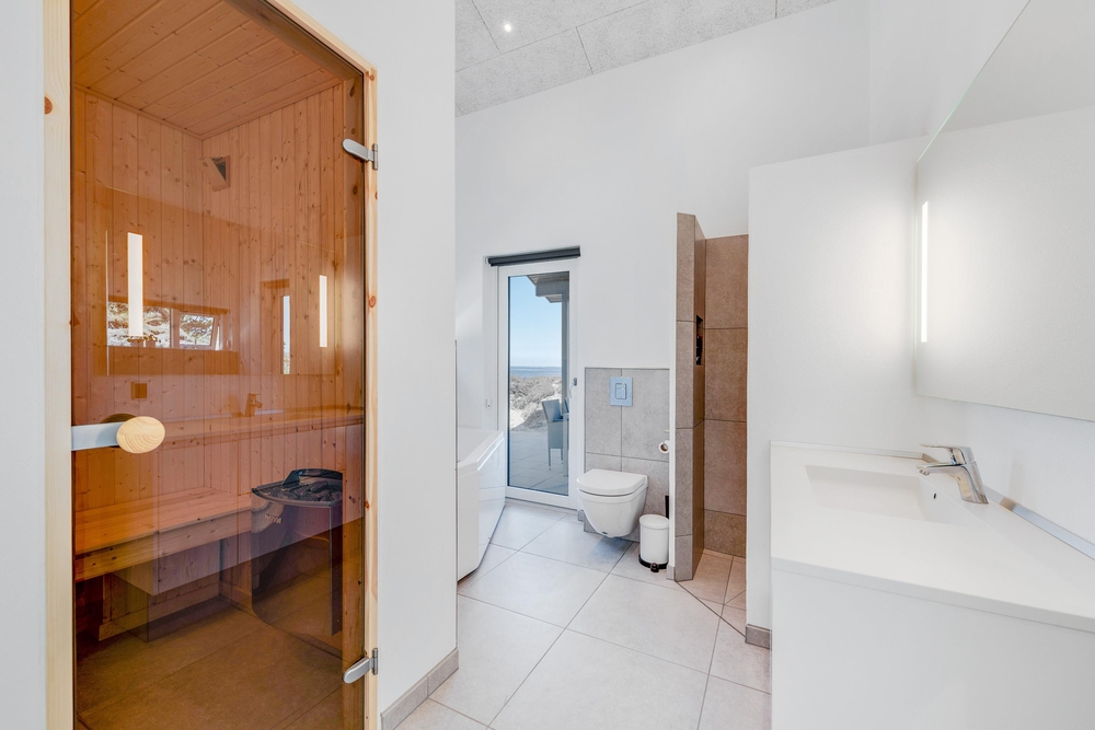 Im größeren der beiden modernen Badezimmer findet ihr zwei tolle Highlights. Der Whirlpool und die hauseigene Sauna sind Garanten für Erholung und Entspannung. Rundet einen langen Tag an der frischen Nordseeluft mit einer wohltuenden Wellnessbehandlung ab und macht es euch danach auf dem Sofa bequem und genießt die wohlige Wärme des knisternden Kaminofens, während sich draußen die Dunkelheit über die Fjordwiesen senkt.