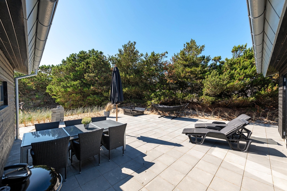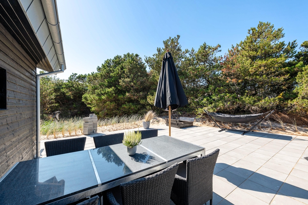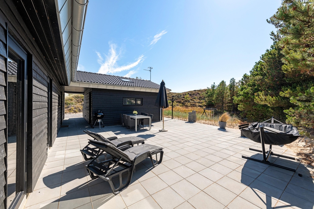 Die Lage dieses tollen Hauses ist einzigartig mit einer einmaligen Panoramaaussicht auf den Ringkøbing Fjord. Die große, teilweise überdachte Terrasse zieht sich um alle Sonnenseiten des Hauses und ist mit bequemen Gartenmöbeln ausgestattet. Hier findet ihr immer ein sonniges Plätzchen mit herrlicher Aussicht. Es stehen genügend Gartenmöbel und Liegestühle für alle Sonnenanbeter zur Verfügung. Zur Freude der jüngeren Gäste gibt es sogar eine Schaukel. Ein gemütlicher Grillabend mit herrlicher Fjordaussicht ist ein unvergessliches Urlaubserlebnis.
