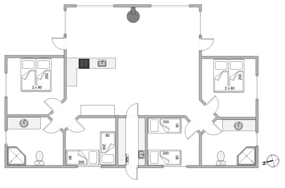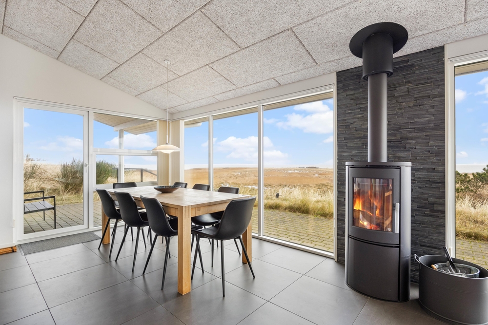 Das charmante Ferienhaus liegt auf einem 2600 m² großen und ruhigen Natur- und Dünengrundstück, eingebettet in die malerische Küstenlandschaft zwischen dem Ringkjøbing Fjord und der Nordsee. Es verfügt über 2 Doppelzimmer mit komfortablen Doppelbetten sowie 2 weitere Schlafzimmer mit je zwei Einzelbetten ? ideal, wenn ihr mit mehreren Personen reist. Zwei funktionale Badezimmer sorgen dafür, dass alle genügend Platz und Komfort haben. Ein praktischer Hauswirtschaftsraum bietet großzügigen Platz zum Aufbewahren und Waschen von Kleidung. Hier stehen auch Waschmaschine und Trockner bereit.