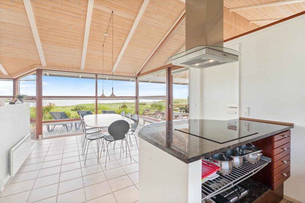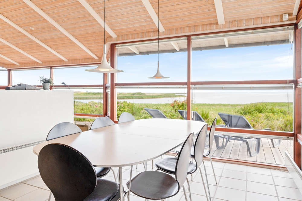 Da das Ferienhaus direkt am Ringkøbing Fjord liegt, könnt ihr euch auf der großen Terrasse morgens mit einer Tasse Kaffee den Sonnenaufgang anschauen und so gut in den Tag starten. Auch vom Wohnbereich habt ihr einen tollen Fjordblick und könnt diesen deshalb auch bei schlechtem Wetter genießen.