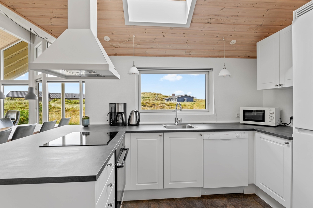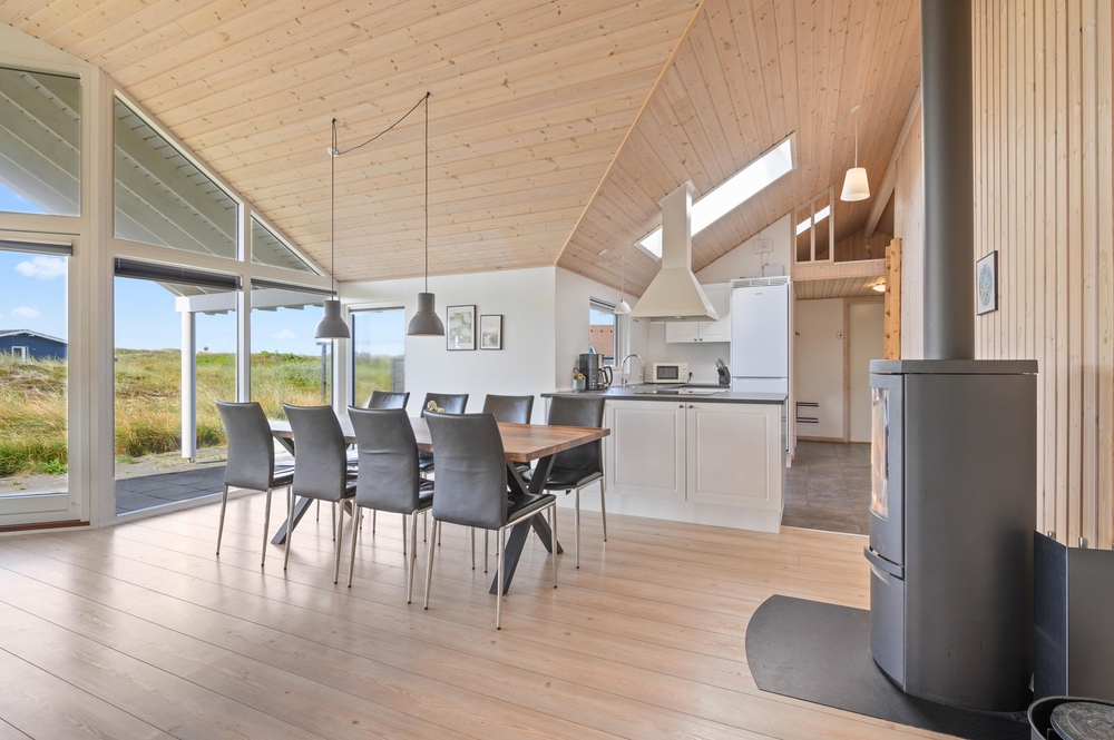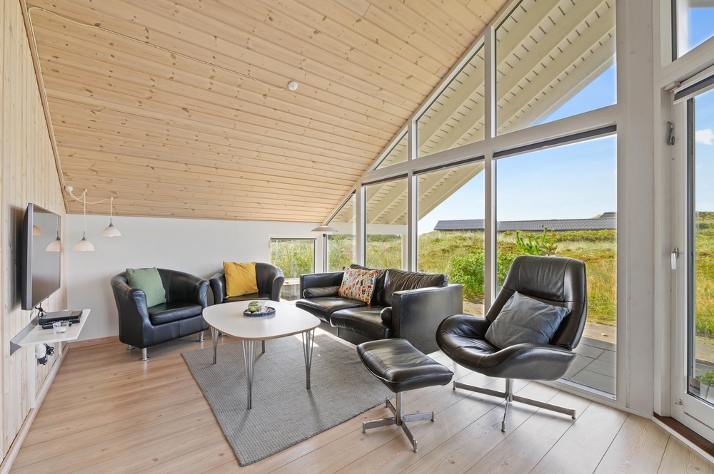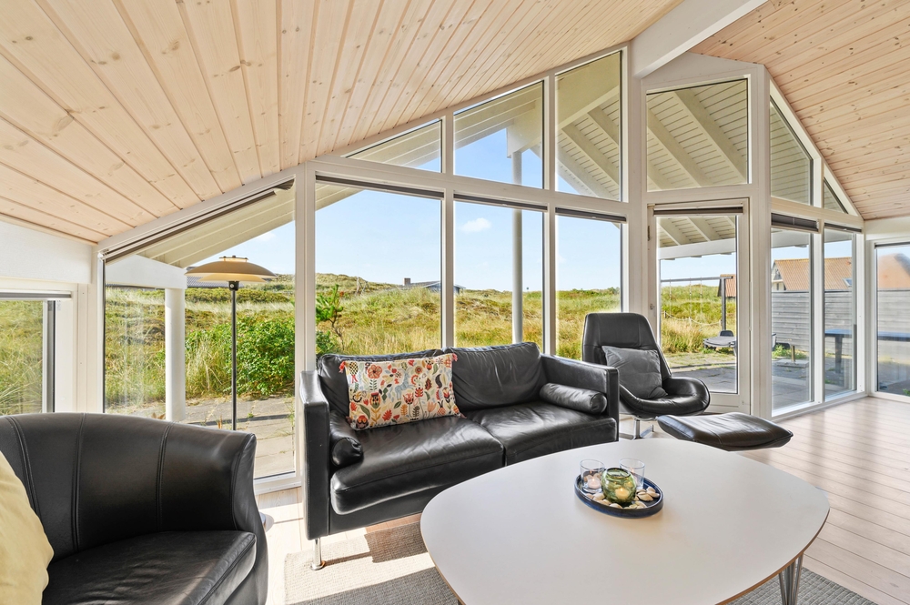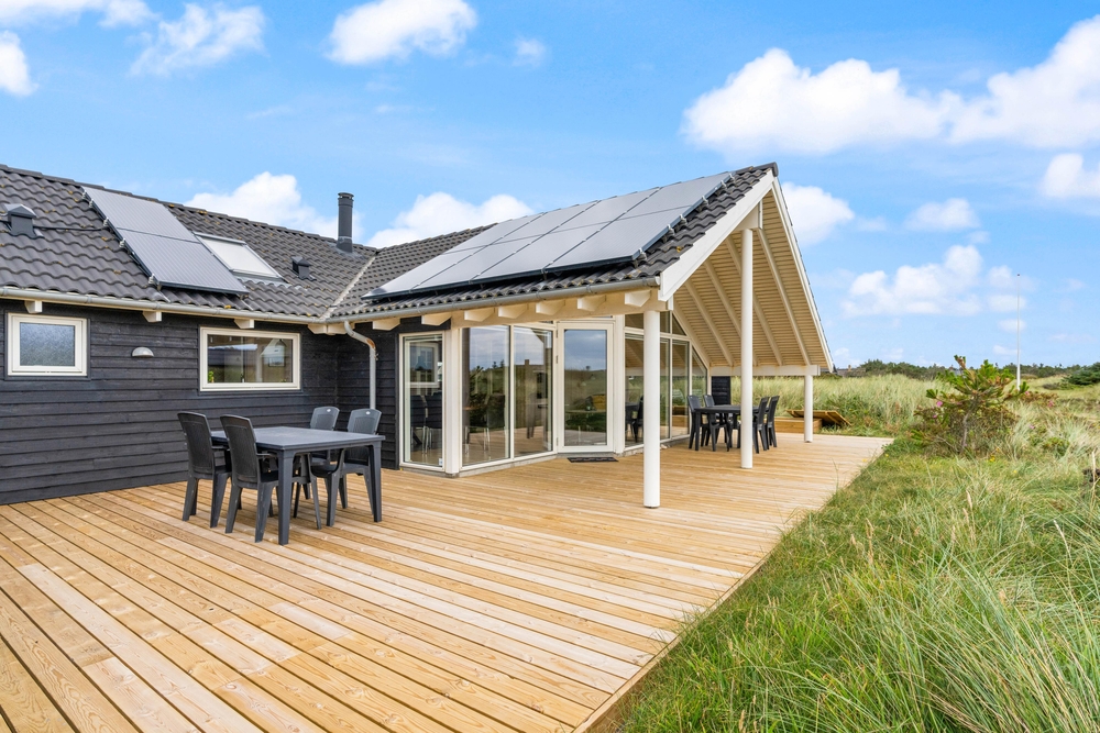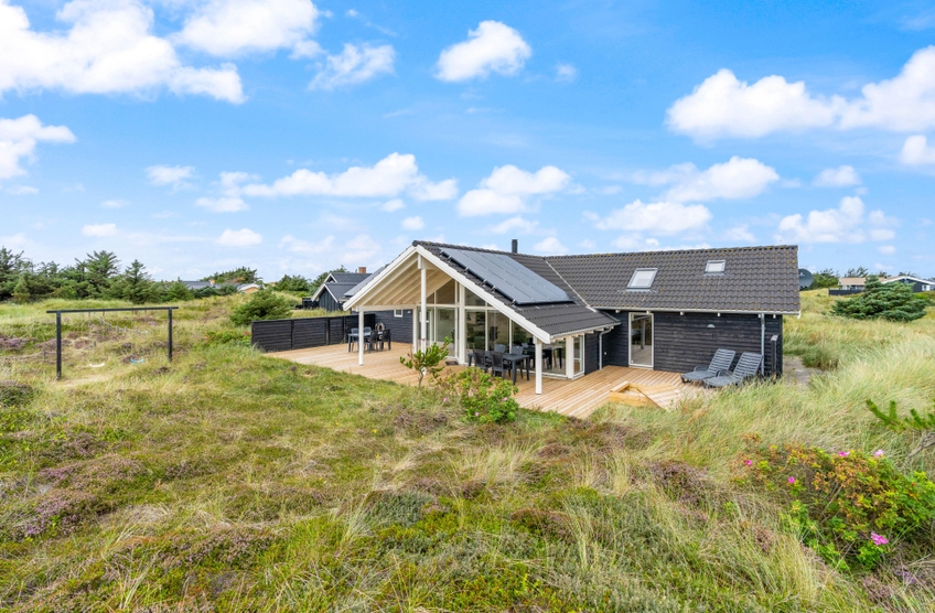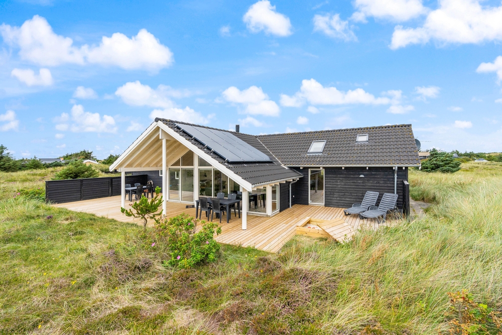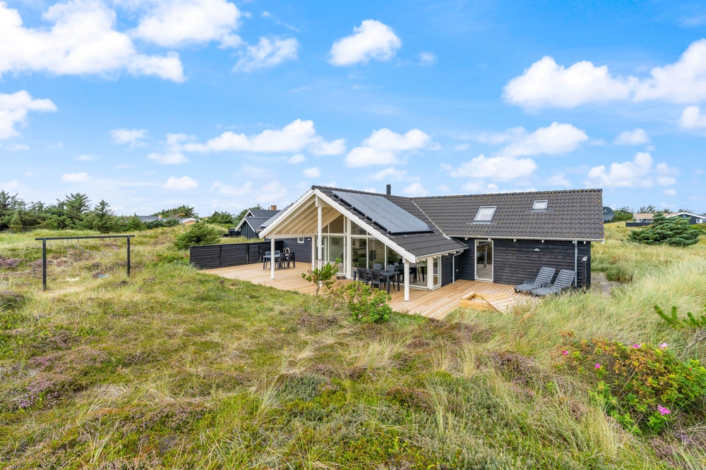 Ein erstklassiges, vom Architekten entworfenes Ferienhaus, bei dem an sämtliche Details gedacht wurden. Das Haus liegt schön und ruhig auf einem großen Naturgrundstück, nur wenige 100 m Meter vom Strand entfernt. Es besitzt einen großen Aktivitätsraum; u.a. auch einen Billardtisch.