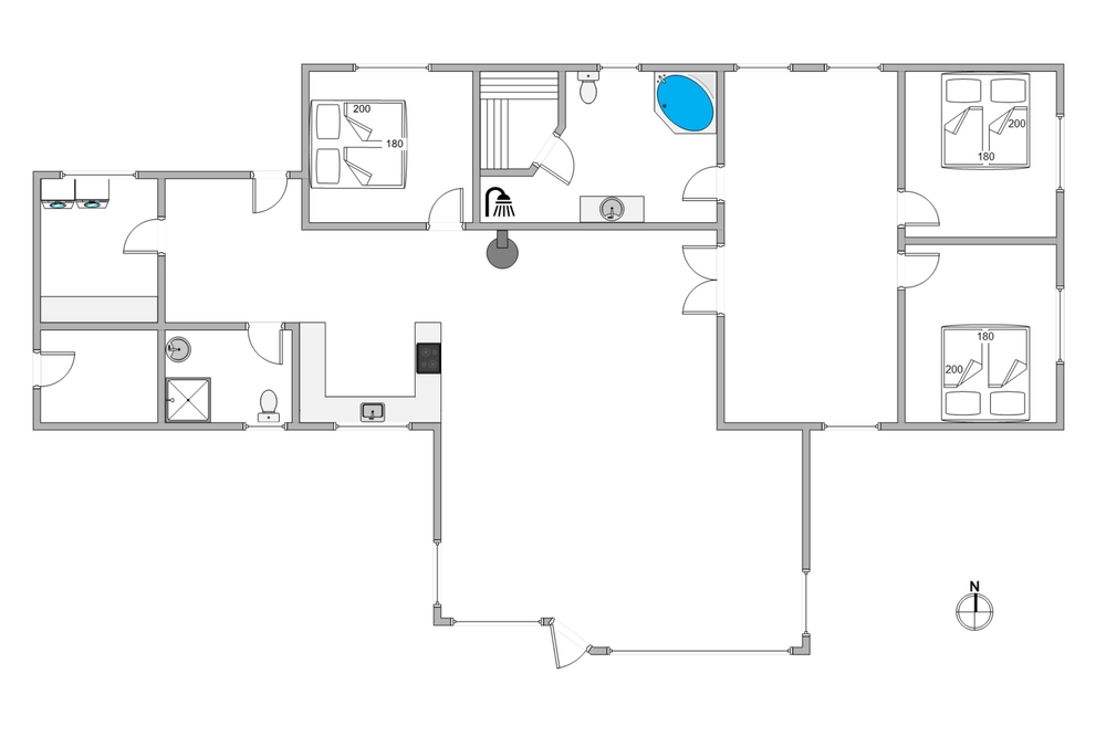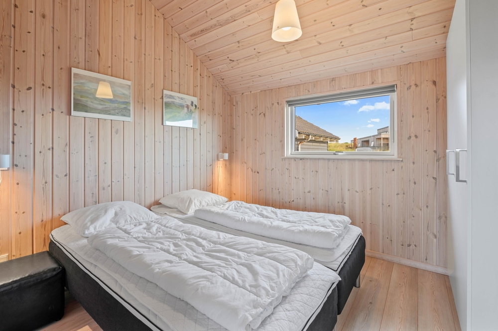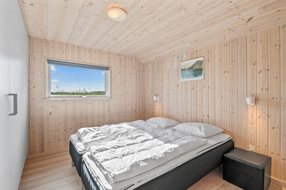 Ein erstklassiges, vom Architekten entworfenes Holzhaus mit schicker Einrichtung und guten Details. Das Haus bietet Platz für 8 Personen, verteilt auf 3 helle und schöne Doppelschlafzimmer und einen Hems (Schlafboden) mit 2 Einzelbetten ? genau richtig für die Kinder. Eine große Fensterfront lässt viel Licht in den zentralen Bereich des Hauses einströmen, welcher den Wohnbereich, das Esszimmer und die Küche enthält. Von hier habt Ihr Zugang zum tollen Aktivitätsraum mit Billard- und Pooltisch, hier könnt Ihr viele schöne Stunden beim spielen verbringen und herausfinden, wer der Beste ist. Das große Badezimmer lädt zur reinsten Verwöhnung ein, entspannt Ihr im Whirlpool und schließt Ihr einen gemütlichen Wellnessabend in der sauna ab. Danach könnt Ihr es euch vor dem Kamin mit seiner angenehmen Wärme gemütlich machen.