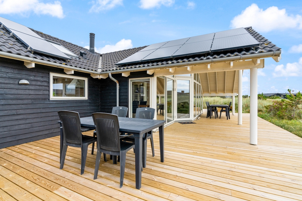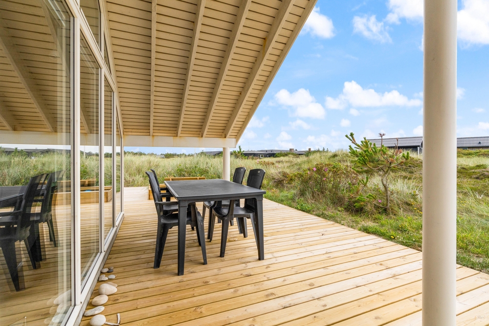 Das Haus liegt auf einem großen Naturgrund, nur 300 m vom Strand entfernt. Auf der richtig schönen, großen Terrasse mit Teilüberdachung könnt Ihr die Sommertage genießen. Holt Ihr den Grill hervor und bereitet Ihr ein leckeres Mittag oder Abendessen zu, während Ihr die Sonne und Ferien in vollen Zügen genießt.