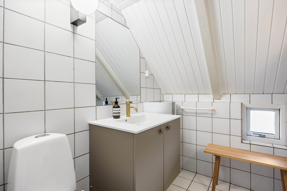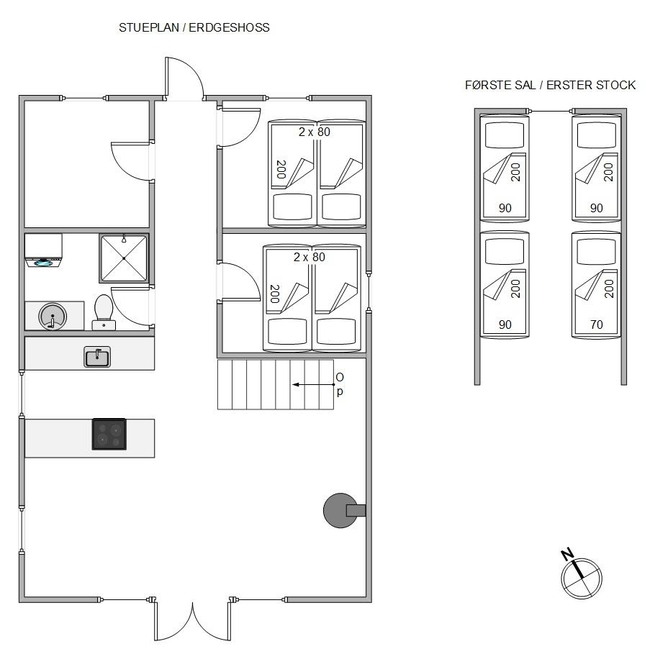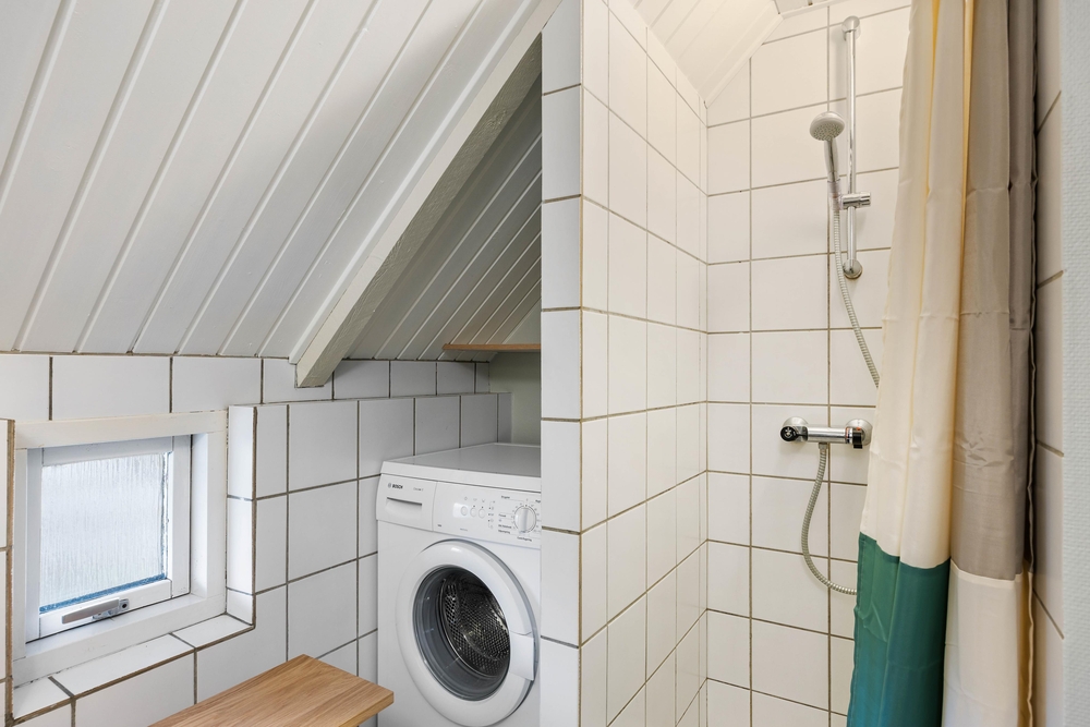 Im Ferienhaus sind genügend Schlafplätze vorhanden. Es gibt 2 geschlossene Schlafzimmer im Erdgeschoss, wo sich auch das Bad befindet. Die anderen Betten befinden sich auf den Herms im oberen Bereich.Das kleine, aber feine Badezimmer ist mit Dusche und einer Fußbodenheizung ausgestattet.