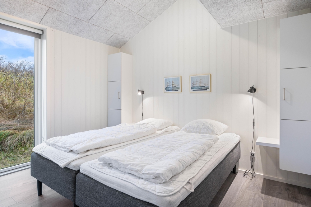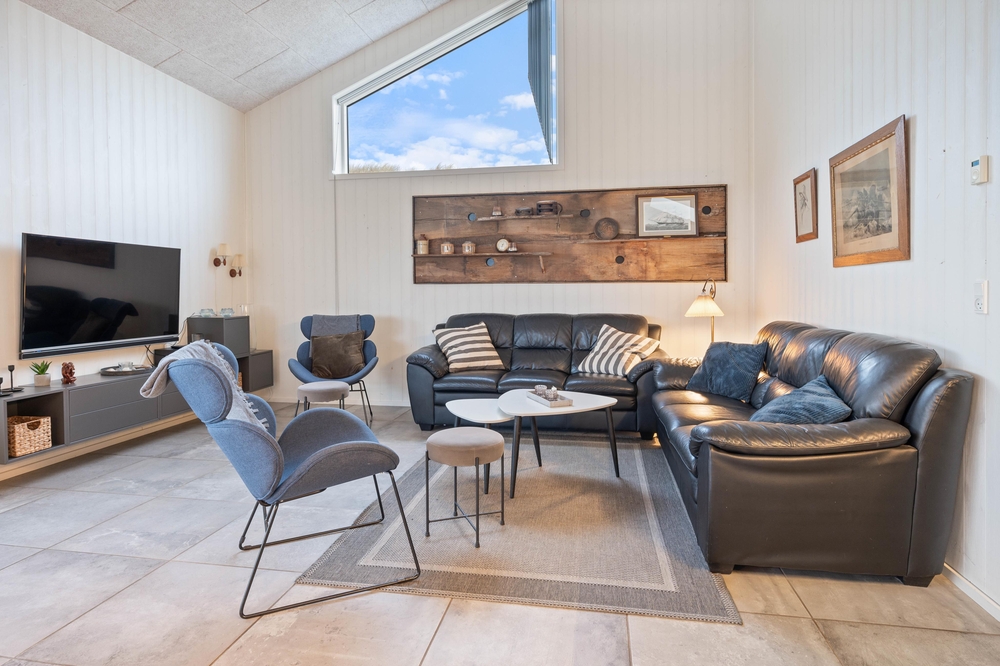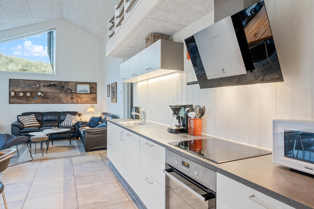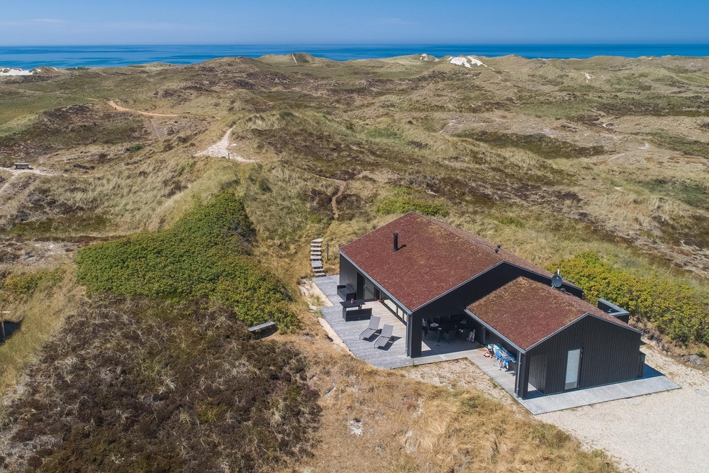 Ein wirklich schönes und praktisch eingerichtetes Ferienhaus mit toller Aussicht und einzigartiger Lage auf einem Dünengrundstück. Geh auf die Düne die hinter dem Haus liegt und genieße den Blick aufs Meer und den Ringkøbing Fjord.
