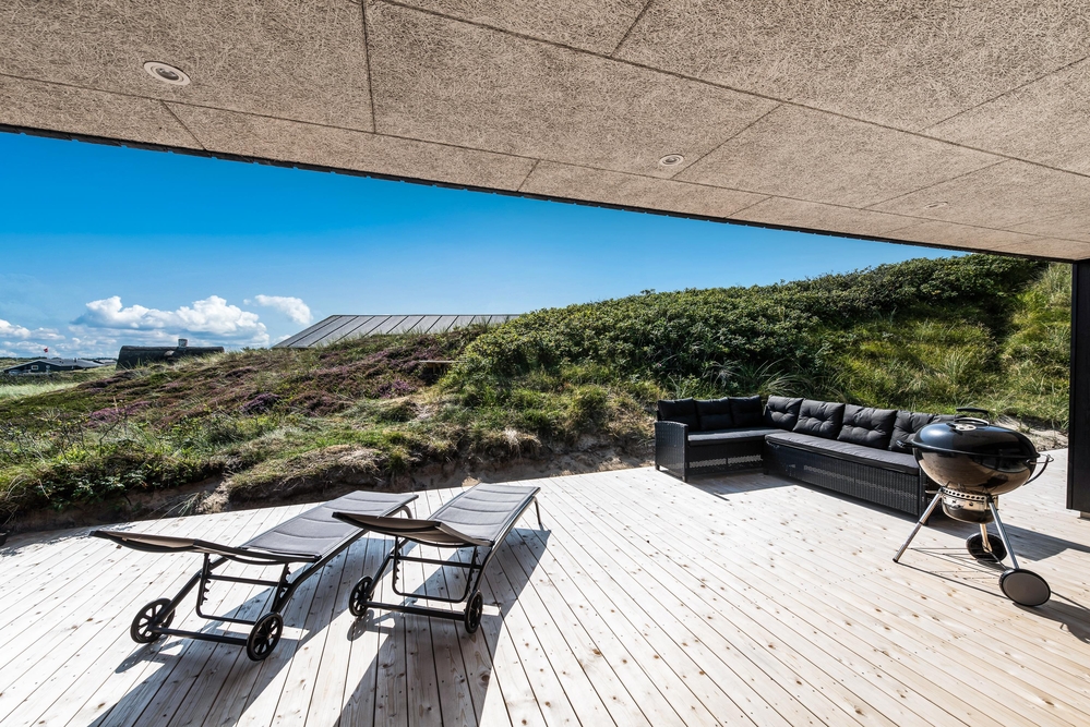 In diesem schönen und modernen Sommerhaus kannst du eine schöne und unvergessliche Zeit mit der Familie verbringen. Da die Terrassen überdacht sind, kannst du bei jedem Wetter draußen auf der Terrassse sitzen und die Natur und die frische Nordseeluft genießen. Nachdem du mit dem Abendessen in den letzten Sonnenstrahlen des Tages fertig bist, kannst du auf die Düne gehen, und den Sonnenuntergang beobachten- besser kann man den Tag doch gar nicht ausklingen lassen.