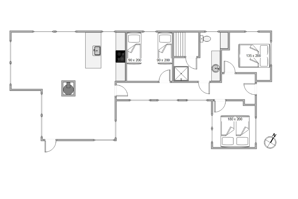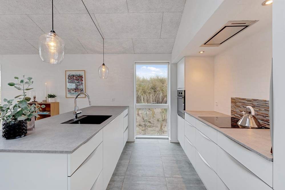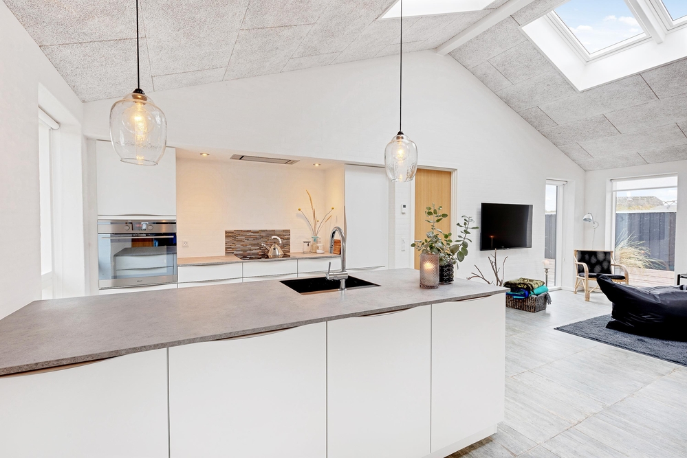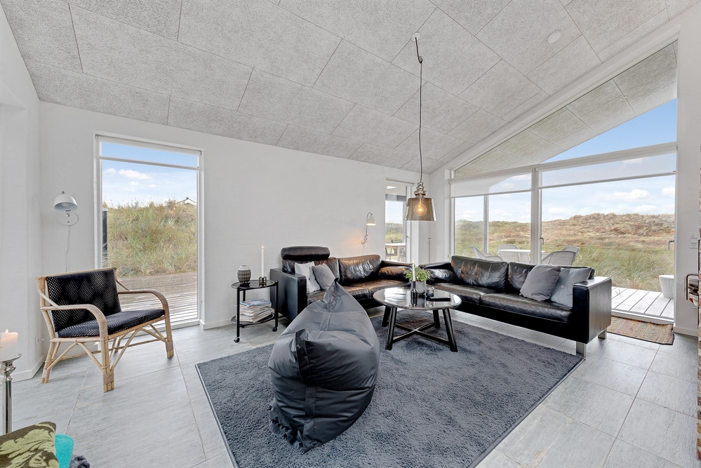 Dieses prachtvolle, im skandinavischen Stil eingerichtete Ferienhaus präsentiert sich hell und geräumig. Die grossen Panoramfenster sorgen besonders im modern eingerichteten Wohnraum, mit der offenen und gut ausgestatteten Küche, für einen schönen Lichteinfall.