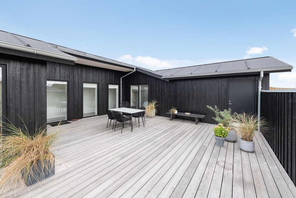 Das Ferienhaus ist von einer schönen Terrasse umgeben, die zum Sonnenbaden und grillen einlädt. Die windgeschützte und teilweise überdachte Terrasse ermöglicht zu jeder Tageszeit und bei fast jedem Wetter den Aufenthalt im Freien. Geniesst die salzige Meeresluft und lauscht dem Rauschen der nahegelegenen Nordsee.