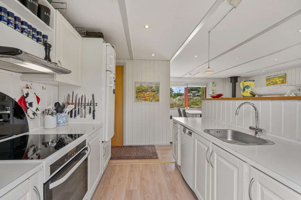 Das Herz des Ferienhauses ist das Familienzimmer, das die Küche, das Wohnzimmer und den Essbereich des Hauses vereint. Das Familienzimmer ist die Kulisse für viele großartige Urlaubsmomente, die mit der schönen Wärme und dem Knistern vom Holzofen vervollständigt wird.